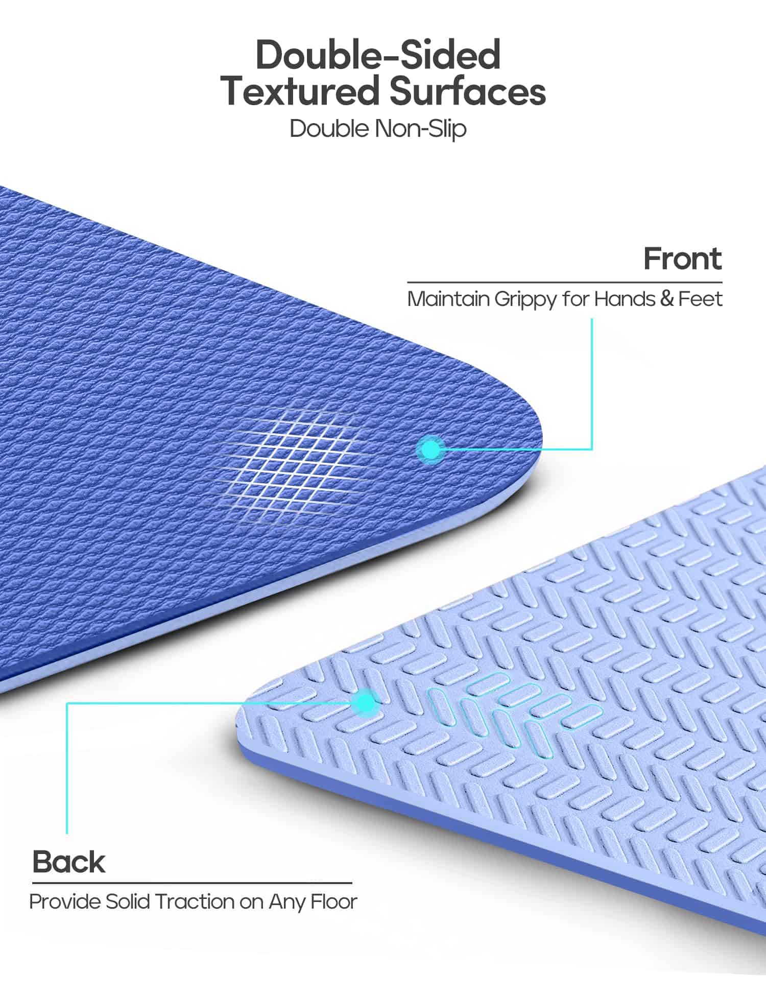 Heathyoga Eco Friendly Non Slip Yoga Mat con Sistema de Aliniamiento Corporal está diseñado para brindarte la mejor experiencia de yoga. Este tapete está hecho de material TPE certificado por SGS, que es respetuoso con el medio ambiente y saludable para ti y para el planeta. Las líneas de alineación del tapete te ayudan a mejorar tu postura y mantener tu cuerpo en la posición correcta durante tu práctica. El grosor de 6mm ofrece una amortiguación óptima para yoguis de todos los niveles. La textura antideslizante en ambos lados del tapete te proporciona un agarre excepcional durante tus sesiones de yoga. Además, su tamaño extragrande te brinda mayor espacio para realizar tus movimientos con libertad. Incluye correa de velcro y correa de transporte para que puedas llevar tu tapete a donde quieras. ¡No esperes más y lleva tu práctica de yoga al siguiente nivel con Heathyoga!