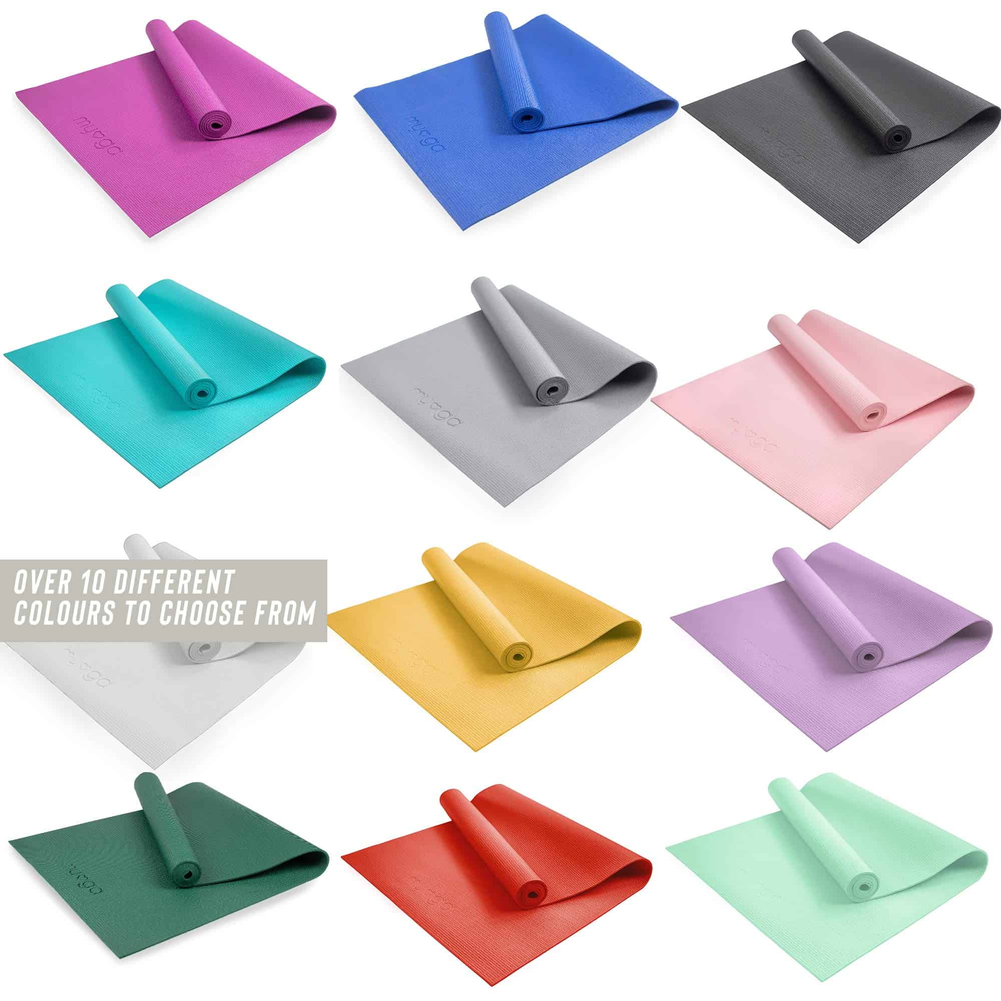 El Tapete de Yoga de Nivel de Entrada de Myga viene en una selección de 12 colores elegantes: