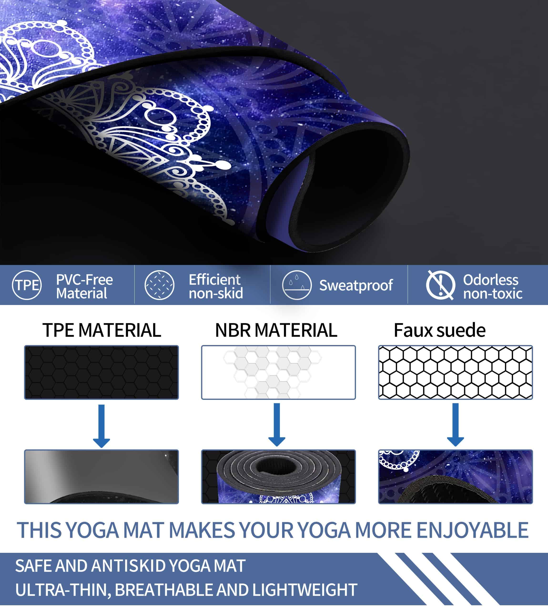 2. GROSOR ÓPTIMO DEL TAPETE DE YOGA – Tamaño: 72 pulgadas x 24 pulgadas x 1/4 de pulgada. Este tapete de ejercicios de 6 mm ofrece una excelente amortiguación y resistencia, que es adecuado para todos los niveles de yoguis. Las líneas de alineación profesional te ayudan a enfocarte y ajustar tus posiciones. ¡El tapete de yoga grande puede satisfacer todas las necesidades de yoga, pilates y ejercicios generales en el suelo para mujeres y hombres!
