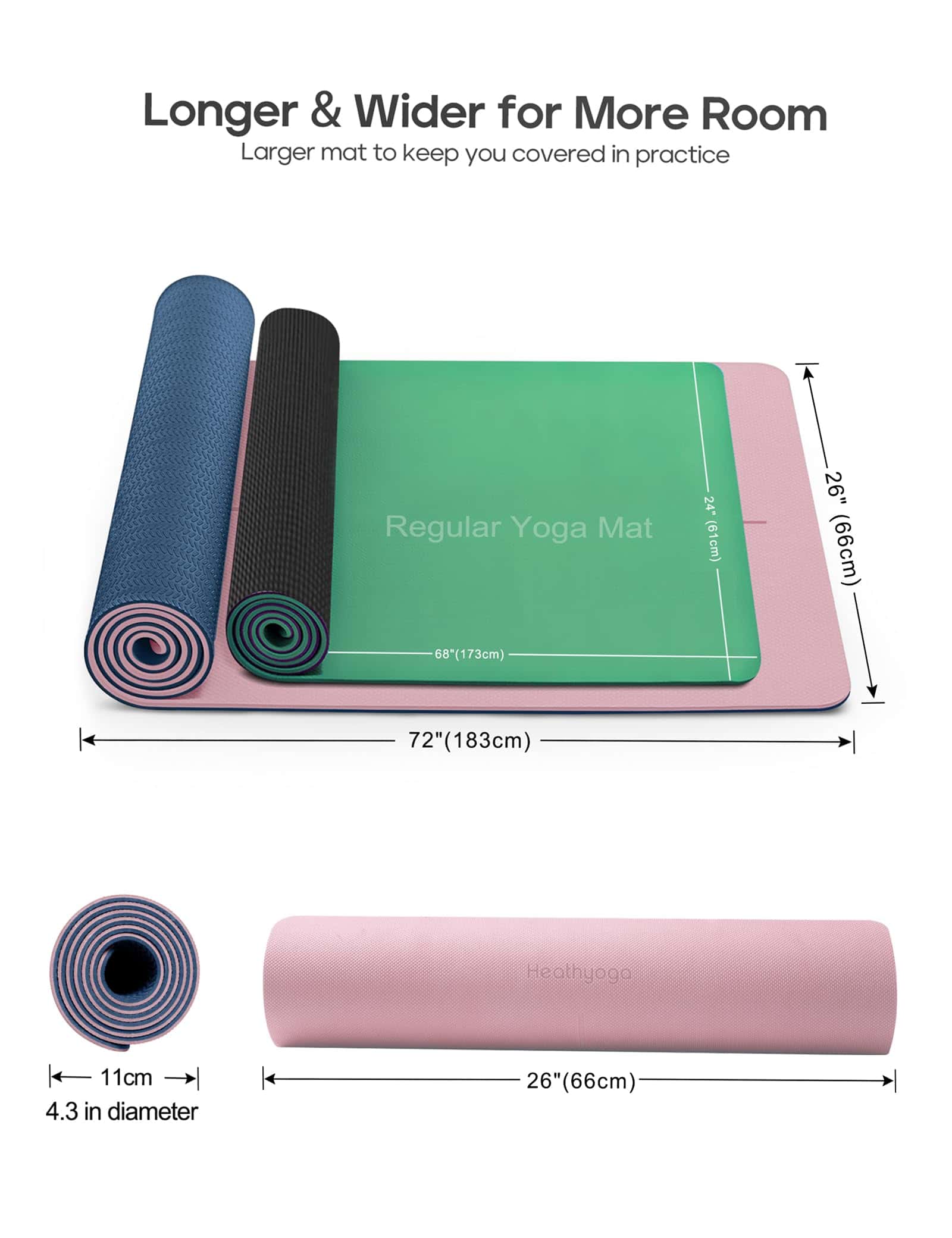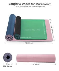 4. Tamaño extra grande: 72″ (183 cm) x 26″ (66 cm); Grosor: 6 mm; Peso: 2.8 lb (Aprox). Más largo y ancho que los tapetes de yoga antideslizantes de grosor regular. Correa de velcro y correa de transporte incluida para el tapete de yoga portátil.