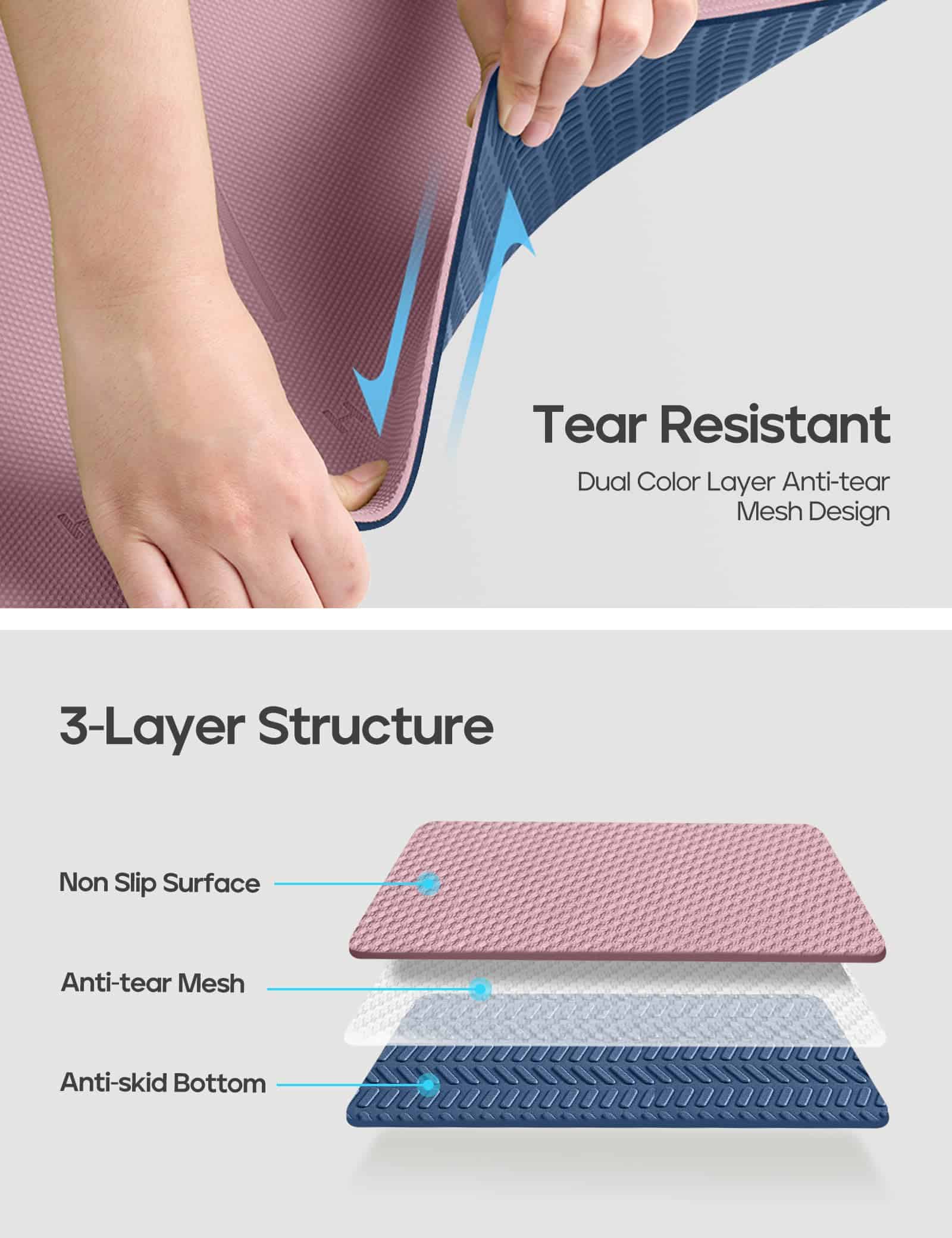 3. Perfecto rendimiento: Con 6 mm de grosor ofrece la experiencia más cómoda para yoguis de todos los niveles. El diseño de estructura de dos capas proporciona un agarre óptimo, excelente amortiguación y textura antideslizante en ambos lados, ideal para practicar diferentes formas de yoga.