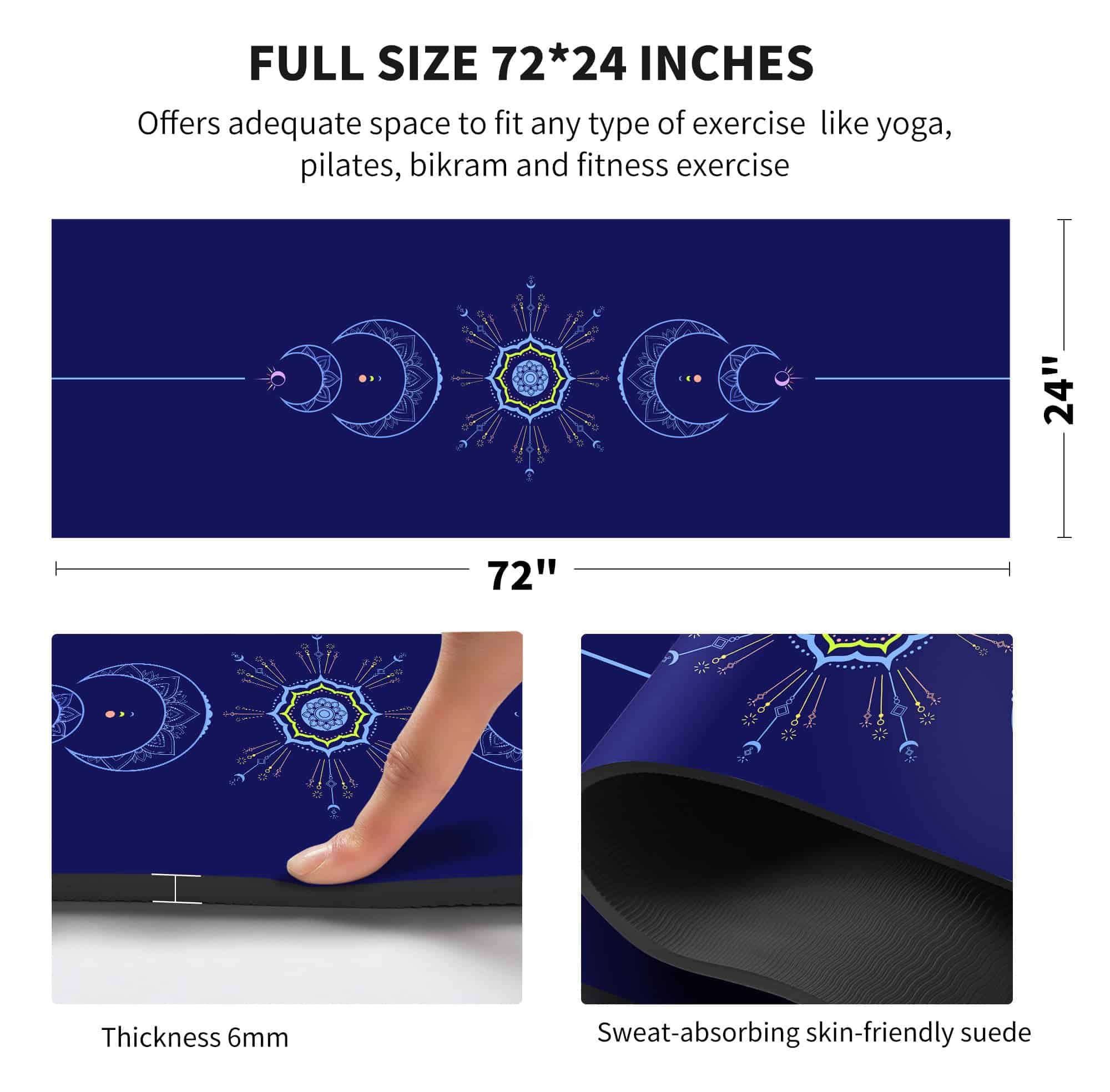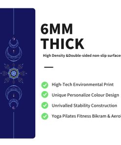 El Tapete de Yoga con estampado de nuveti es ideal para practicar yoga, pilates, ejercicios de fitness y ejercicios en el suelo. Está hecho de premium TPE, que es más suave, más ligero y tiene mejor resistencia que los materiales tradicionales de PVC, NBR y EVA. La doble capa a prueba de rasgaduras proporciona una base duradera y de apoyo. La superficie antideslizante por ambos lados mejora la seguridad durante los ejercicios. Con una cómoda espesor de 6 mm, garantiza una experiencia de yoga cómoda para todos los niveles. El tamaño de 72″x24″ ofrece un espacio adecuado para todo tipo de ejercicios. La superficie de gamuza evita que las manos y los pies se deslicen durante la práctica. El cuidado del tapete es fácil: simplemente limpialo con agua y cuélgalo para secar al aire. Además, viene con una bolsa de transporte para un transporte sin complicaciones de casa a la clase de yoga. ¡Nuvei ofrece un tapete de yoga de alta calidad para una práctica cómoda y segura!