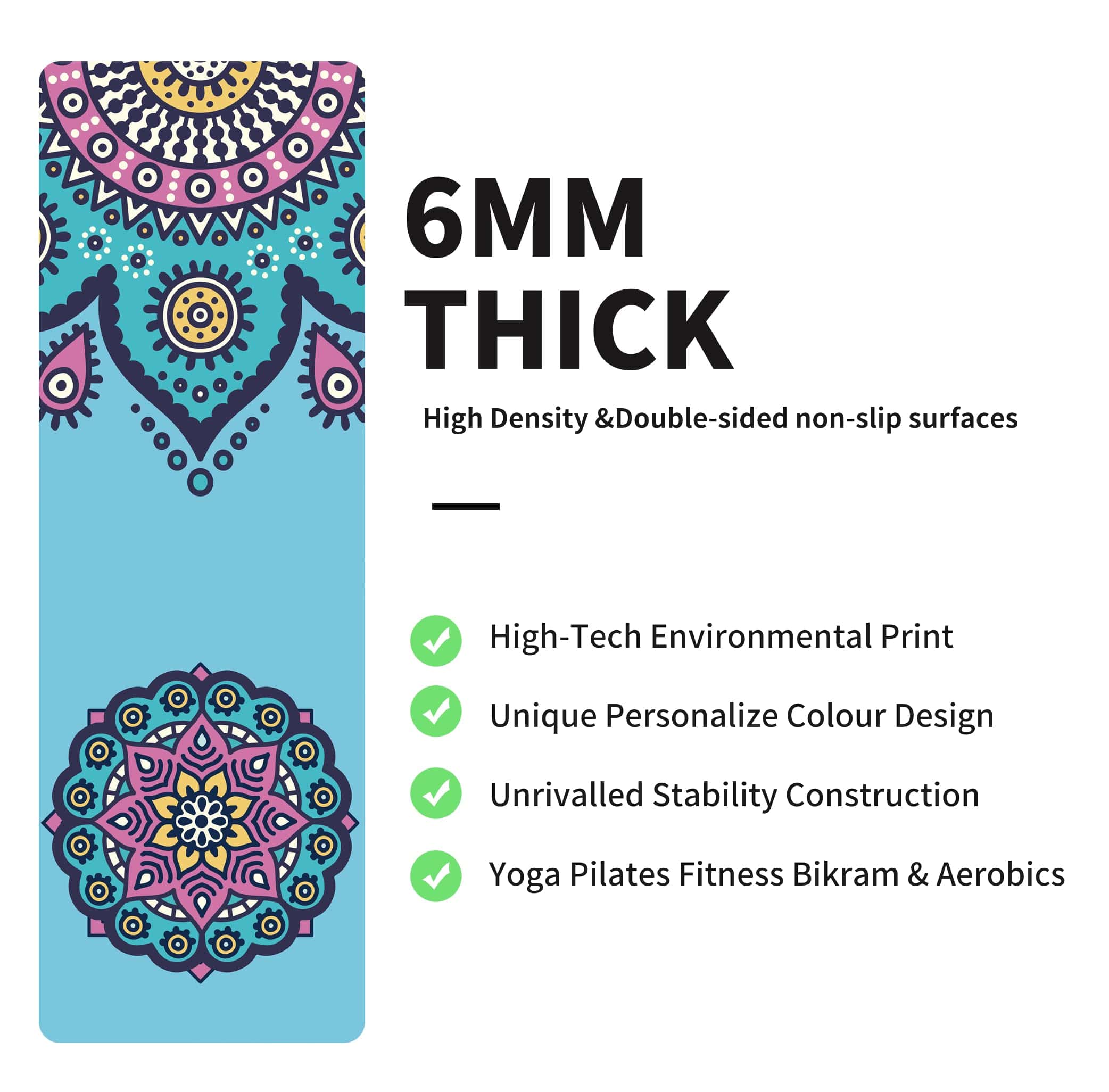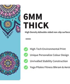 Tapete de yoga estampado nuveti extra grueso de TPE, antideslizante con bolsa de transporte, 72″x24″ espesor extra de 6MM, tapete de ejercicio para yoga, pilates y ejercicios de fitness. El material de TPE de calidad premium es la última actualización y mejora de la tecnología de producción tradicional. Comparado con los tapetes de yoga tradicionales hechos con material PVC no ecológico, NBR y EVA, es más suave, ligero y tiene mejor elasticidad. Los tapetes de yoga de Material TPE son una base duradera y de apoyo, con doble capa anti rotura. Superficie anti-deslizante en ambos lados, para que puedas hacer cualquier ejercicio de manera segura. La textura ondulada es la superficie de contacto con el suelo, mejora la resistencia al deslizamiento. La superficie de gamuza evita que las manos y los pies se deslicen de posición. Que es más resistente al deslizamiento si rocías agua en el tapete. Espesor de 6mm del tapete de ejercicios ofrece la experiencia más cómoda para todos los niveles de yoga. Garantiza la comodidad para todos los propósitos y garantiza proporcionar el nivel óptimo de amortiguación y protección para tus articulaciones y rodillas, permitiéndote seguir agarrándote al suelo para posturas de equilibrio. La mayoría de los tapetes de yoga de TPE para mujeres y hombres son demasiado delgados o demasiado gruesos. Los tapetes de yoga antideslizantes de nuveti son los más adecuados para practicar muchas formas de yoga, pilates y ejercicios en el suelo. 72 «x 24» ofrece espacio adecuado para cualquier tipo de ejercicio como yoga, pilates, ejercicio físico y mucho más. El tapete de ejercicio de nuveti es más seguro y cómodo. Es perfecto para practicar posturas de equilibrio, especialmente el grosor extra de 6 mm es de alta densidad, proporciona una excelente amortiguación y elasticidad, Todos nuestros tapetes vienen con una bolsa gratis para facilitar el transporte desde casa a la clase de yoga. Limpie con agua y deje secar en el aire para el cuidado diario del tapete. Esta rutina de cuidado simple ahorra tiempo y garantizará que tu tapete dure años. Una bolsa de transporte adicional viene con el tapete porque nuveti se compromete a ofrecerte una manera LIBRE DE ESTRÉS de ir y volver de tu práctica de yoga.