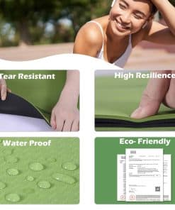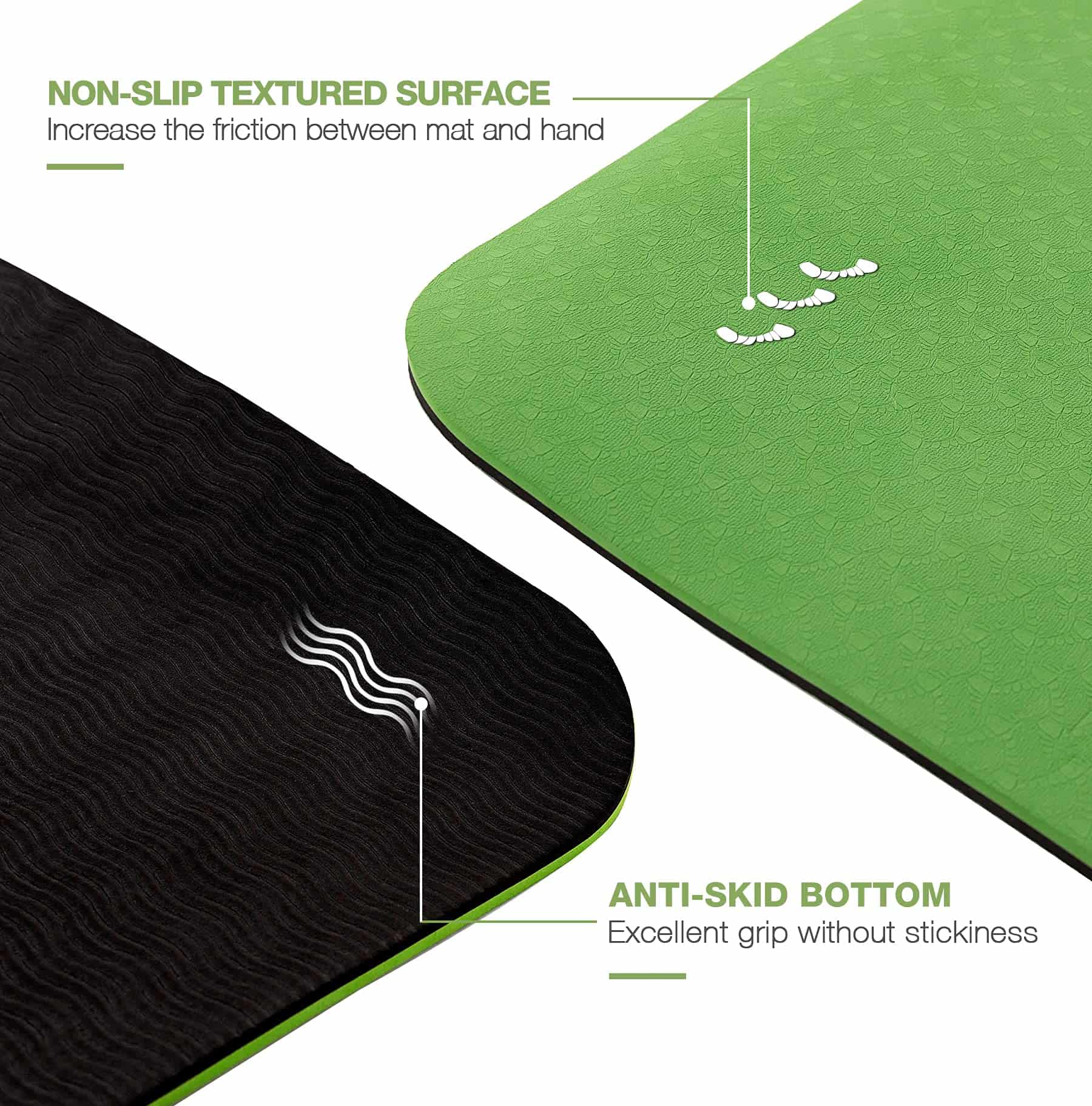 3. TAPETE DE YOGA EXTRA ANCHO – Tamaño: 72 pulgadas x 32 pulgadas x 1/4 de pulgada. Suficientemente largo y ancho para cubrir todas tus posturas. Debido a su fuerte amortiguación y resistencia, este tapete de fitness de 6 mm puede proteger las articulaciones sin comprometer el soporte, ofreciendo la experiencia más cómoda para todos los niveles.