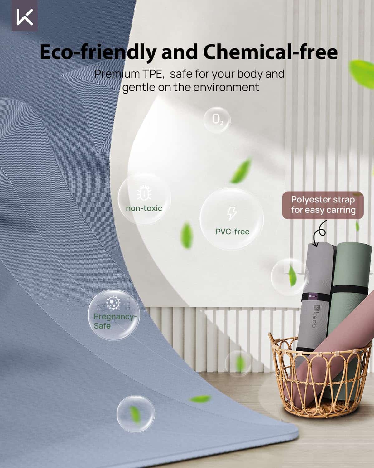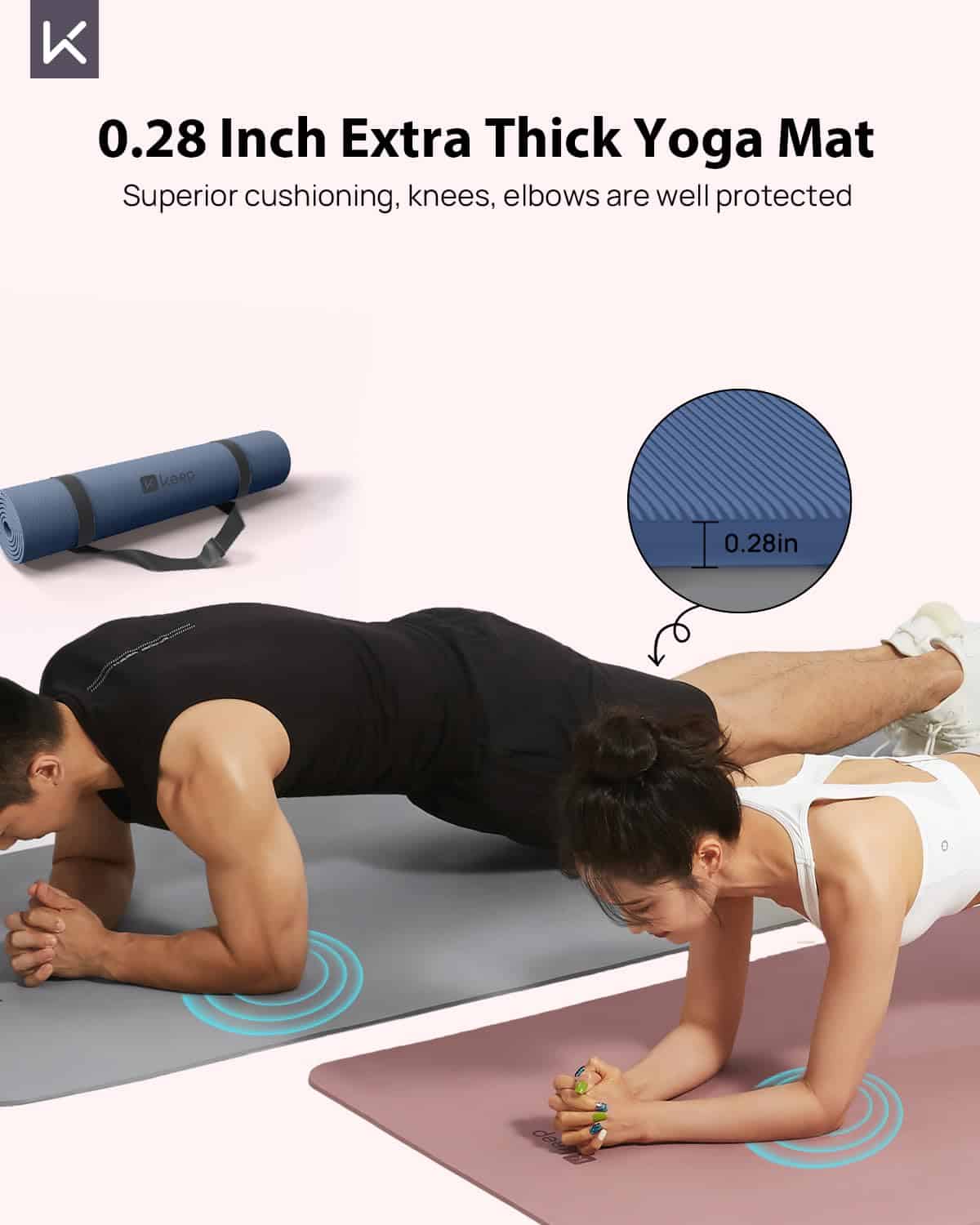 Tapete de Yoga Extra Ancho y Grueso de TPE, 7mm, Azul Marino