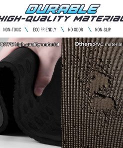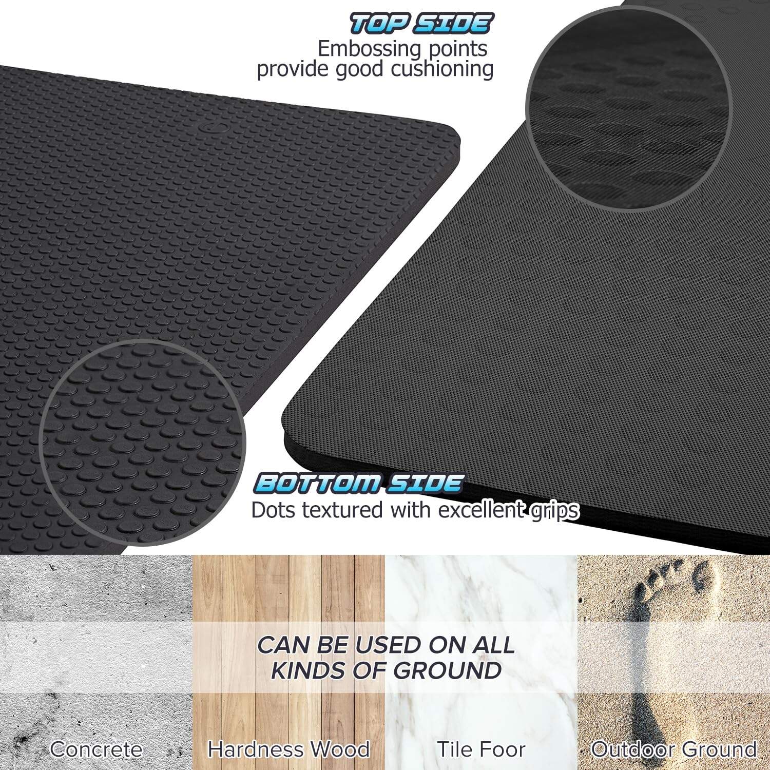 2. NO DESLIZA EN AMBAS CARASLos 369 módulos antideslizantes de amortiguación en la superficie de este tapete de yoga de ejercicios pueden proporcionar una fuerte fricción para el cuerpo, y la parte inferior tiene una textura de ventosa de puntos, que proporciona un excelente agarre. Incluso si sudas profusamente, no tienes que preocuparte por resbalar, lo que mejora en gran medida la seguridad. Mejor apto para usar en cualquier ocasión, como suelo de madera, suelo de baldosas, cemento, dormitorio u hogar o práctica en el estudio.