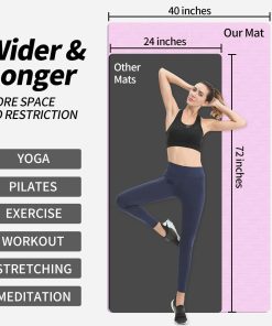 1. Tapete de yoga extra largo: El tapete de yoga mide 79″ de longitud y 40″ de ancho, ofreciendo un amplio espacio que te permite estirarte cómodamente sin sentirte limitado. Está diseñado para yoguis altos y personas que necesitan más espacio para hacer poses de yoga, Pilates, estiramientos y entrenamientos, entre otros.