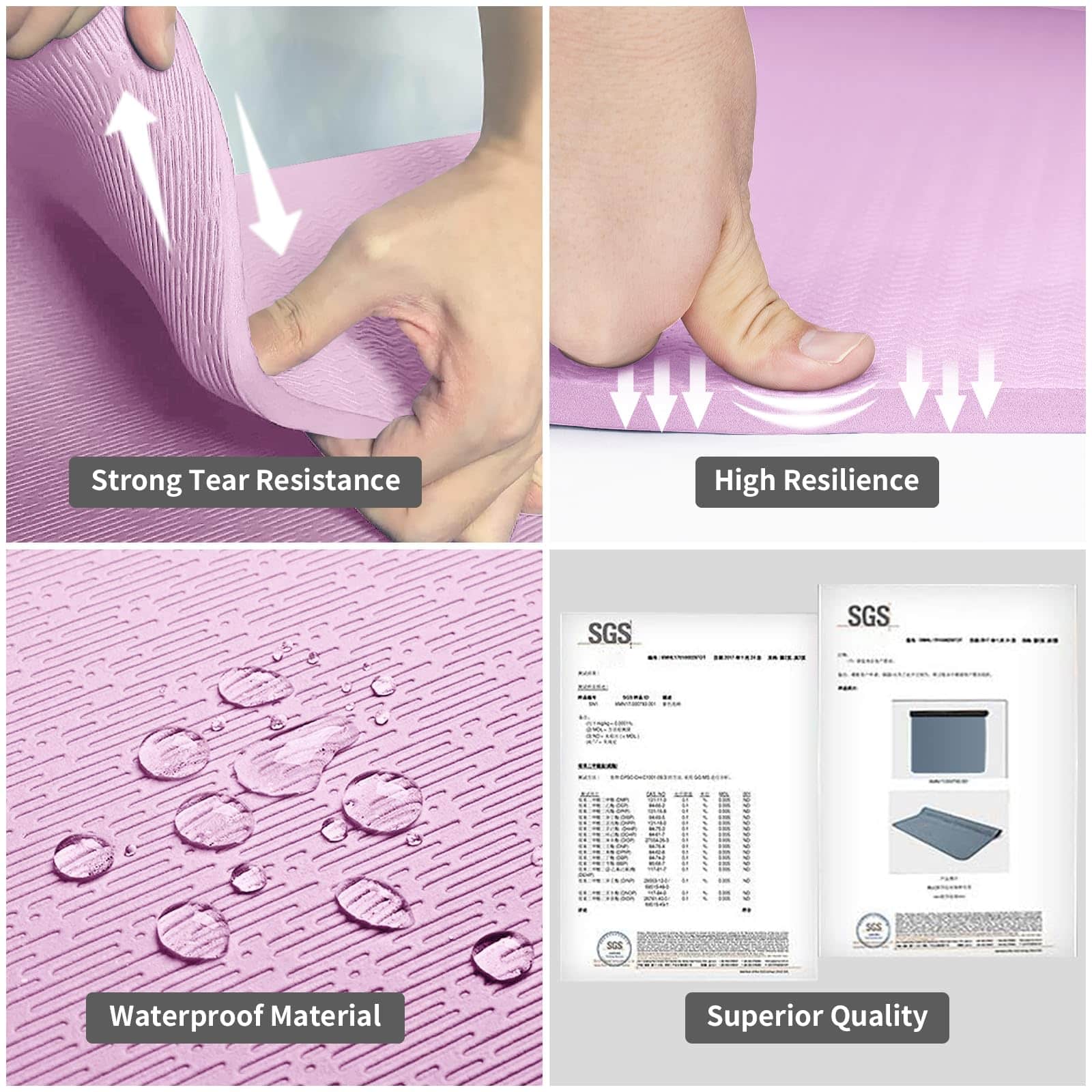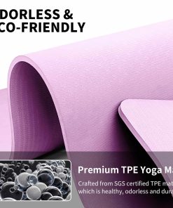 2. Material premium TPE: Nuestro tapete de yoga está hecho de material TPE certificado por SGS, que es saludable, inodoro, ecológico y reciclable. Tiene una larga vida útil debido a su alta elasticidad, resistencia al desgarro y la abrasión, a diferencia de los materiales tradicionales como el PVC y NBR.