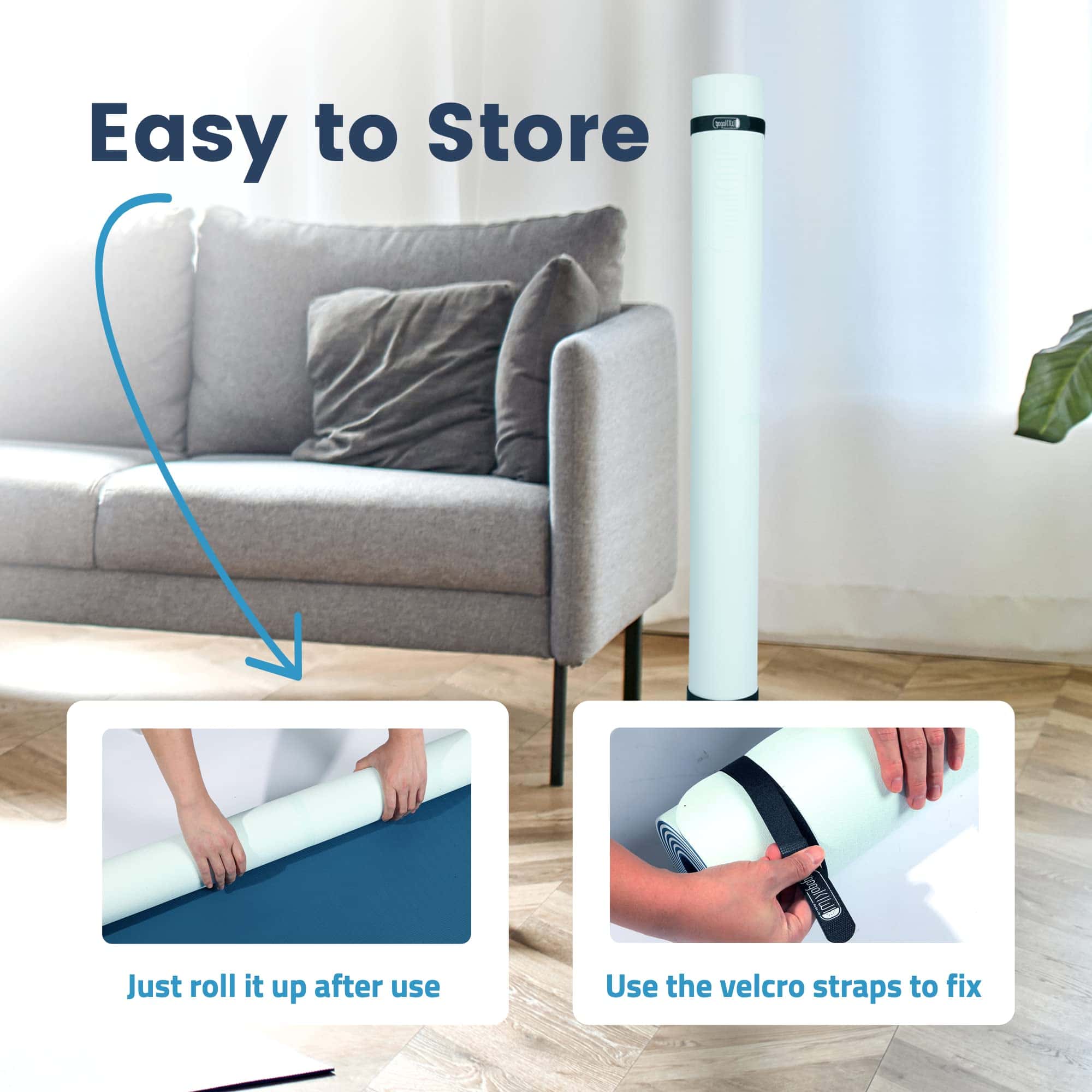 5. Fácil Limpieza y Almacenamiento Conveniente Gracias a su material de celda cerrada, nuestro tapete de ejercicio grande evita la absorción del sudor, lo que facilita su limpieza y mantenimiento para un uso a largo plazo. Además, viene con correas de velcro para un almacenamiento sin complicaciones