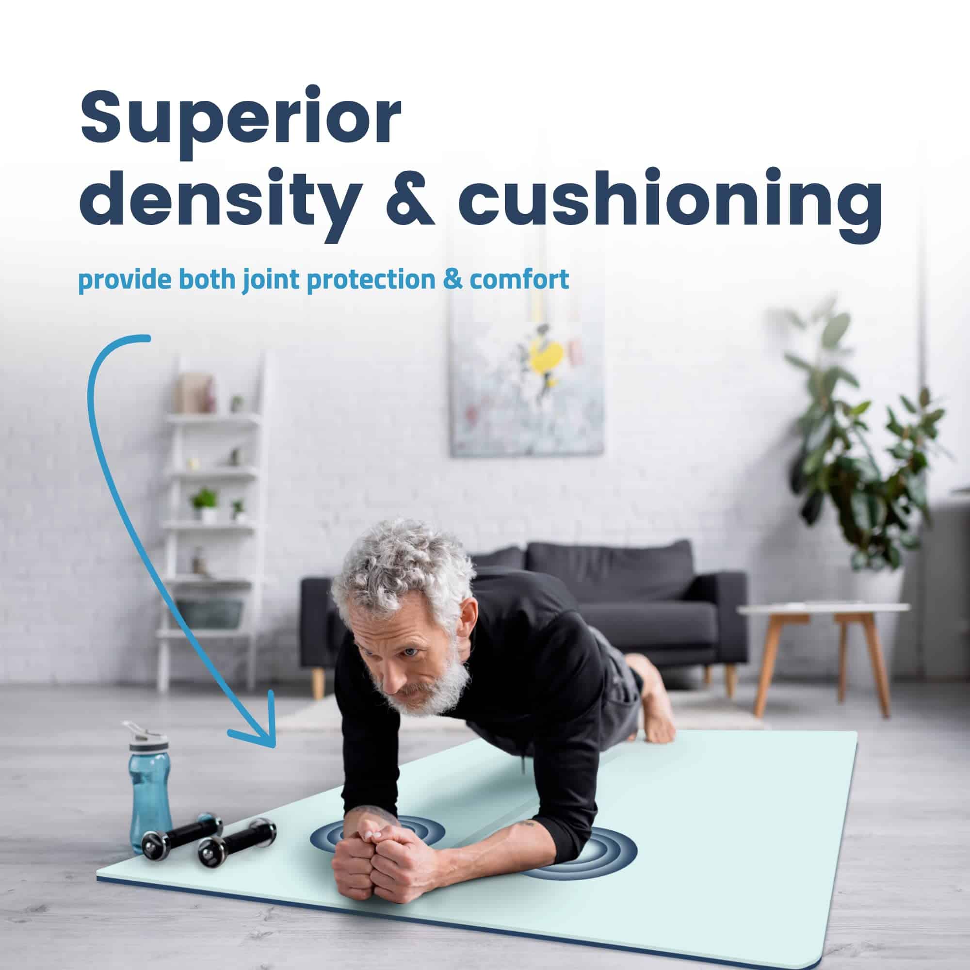 2. Ecológico y Sostenible Hecho de premium Recfoam, nuestro tapete de ejercicio para gimnasio en casa es 100% reciclable, asegurando que no haya daño ambiental durante su ciclo de vida. Haga ejercicio con la tranquilidad de saber que está haciendo una elección verde.