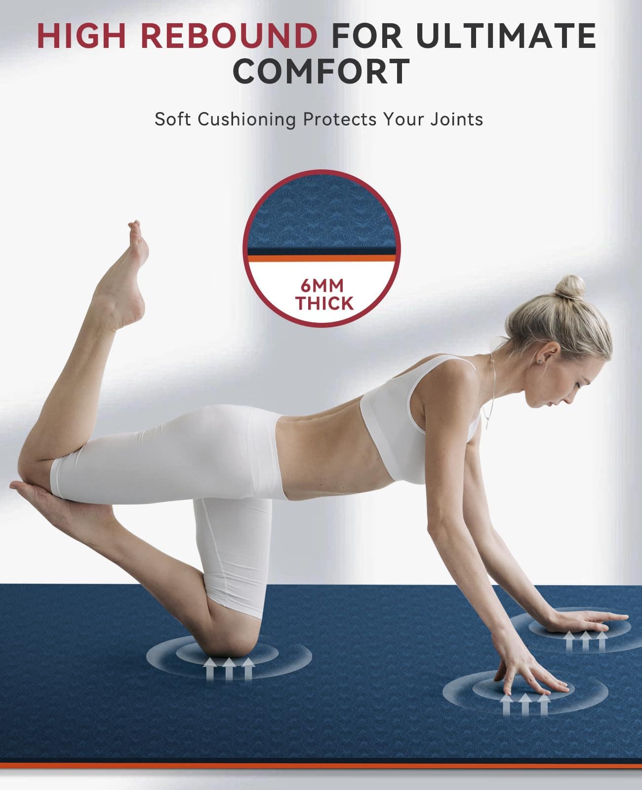 3. Con un grosor de 6mm, este tapete de ejercicio grande ofrece el equilibrio perfecto entre amortiguación y soporte, convirtiéndolo en un excelente tapete grueso de yoga para realizar diversos ejercicios en el piso. Ya sea que estés realizando posturas estáticas o movimientos de alta energía, ayuda a minimizar la tensión en las articulaciones mientras mejora la comodidad.
