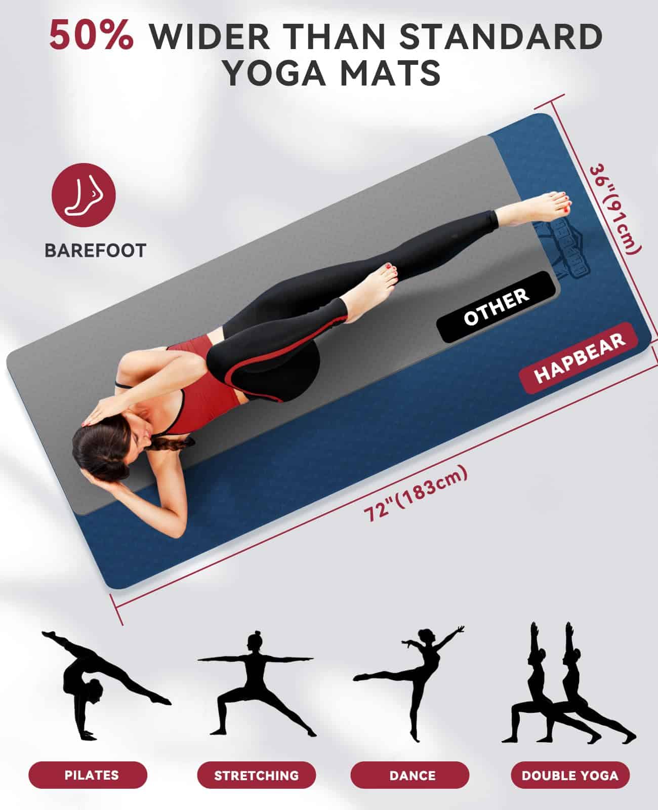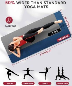 1. El tapete de ejercicio grande de HAPBEAR proporciona una amplia superficie de 72″x36″, ofreciéndote el espacio necesario para realizar tus entrenamientos con libertad. Ideal para yoga, Pilates, meditación, estiramiento y otros ejercicios descalzos, permitiéndote practicar con confianza.