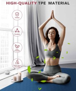 4. Fabricado con TPE ecológico, este tapete de yoga extra ancho es duradero y fácil de limpiar, diseñado para la sostenibilidad y el uso a largo plazo. Es una opción respetuosa con el medio ambiente que se mantiene bien durante todo tipo de entrenamientos en casa. Nota: Puede presentar un ligero olor inicial; permita 1-2 días de ventilación.
