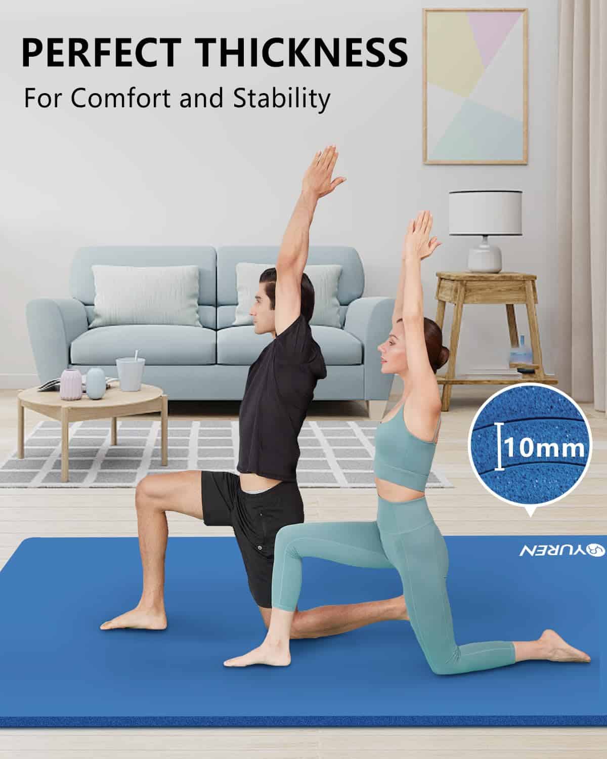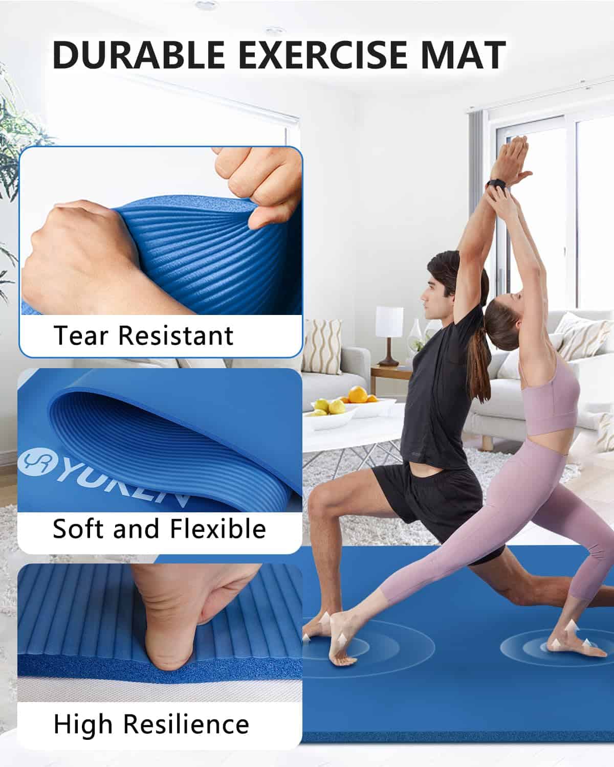 2. Tapete de Yoga Grueso y Extragrande: Sienta el soporte y la comodidad que proporciona el acolchado de 2/5 pulgadas de grosor y ayude a mantener el equilibrio en las posturas de yoga. Además, tenemos el tapete con mucho más acolchado para ejercicios rehabilitativos, el grosor es de 1/2 pulgada y 4/5 pulgada.