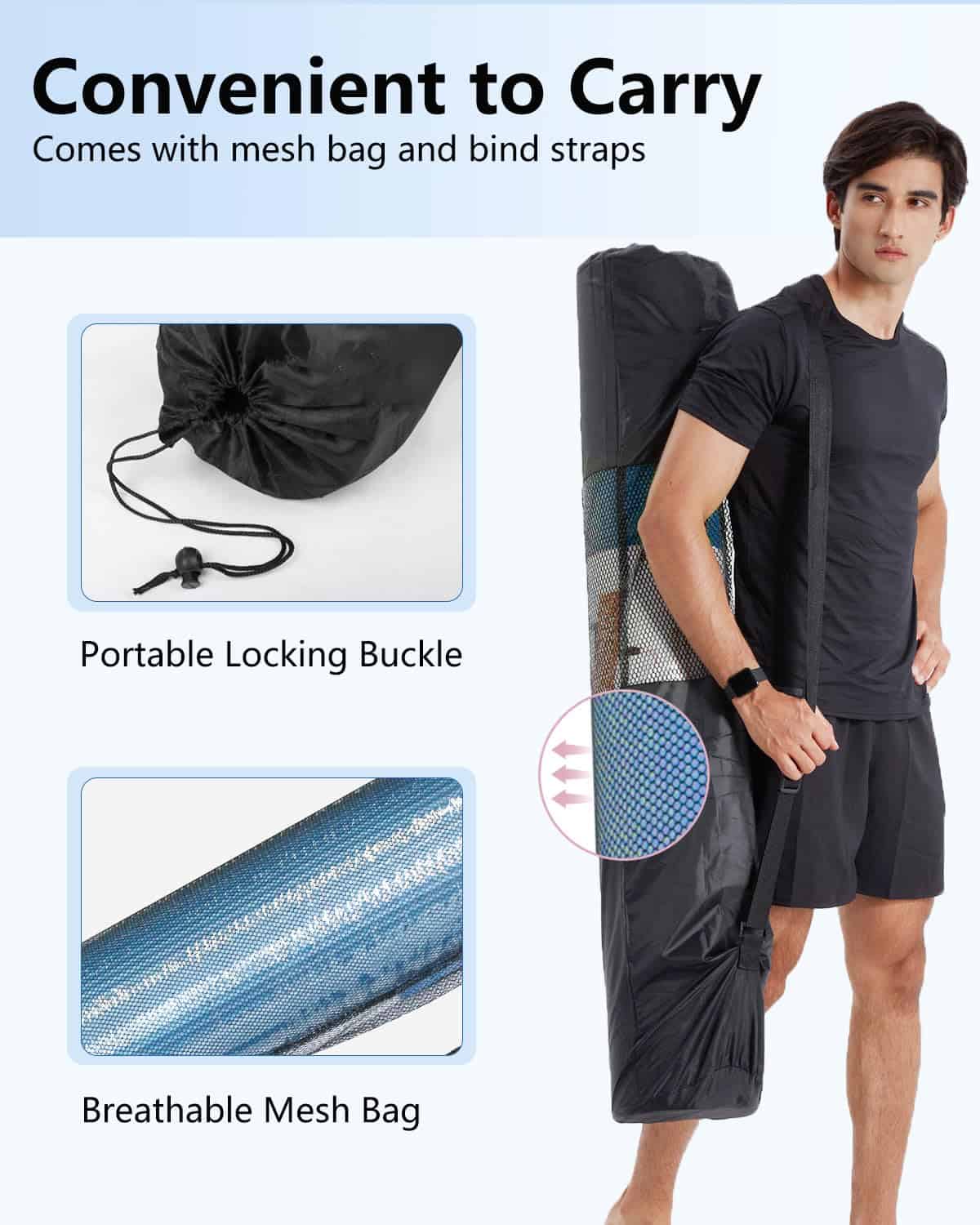 5. Fácil de Limpiar y Almacenar: El diseño impermeable permite que el tapete se pueda usar en condiciones interiores y exteriores, además de ser fácil de limpiar. Viene con una bolsa de transporte de malla, 2 bandas elásticas dentro del tapete enrollado, fácil de enrollar y almacenar.