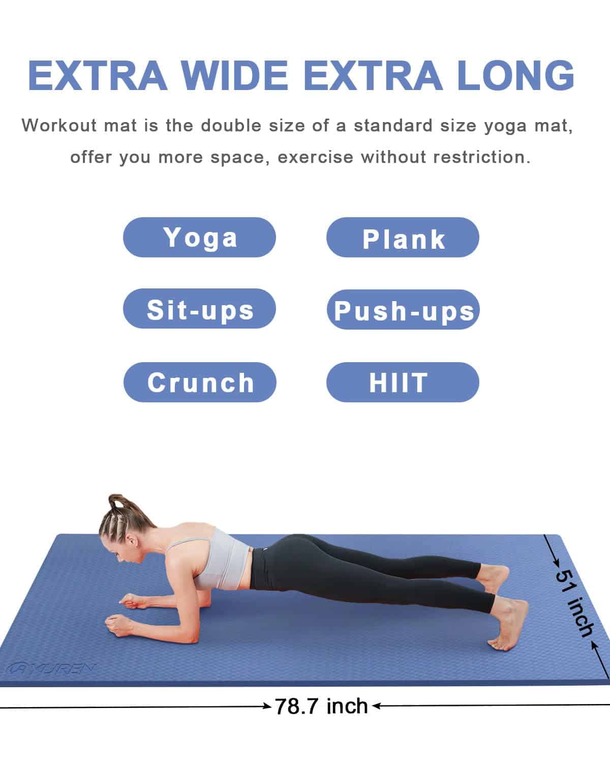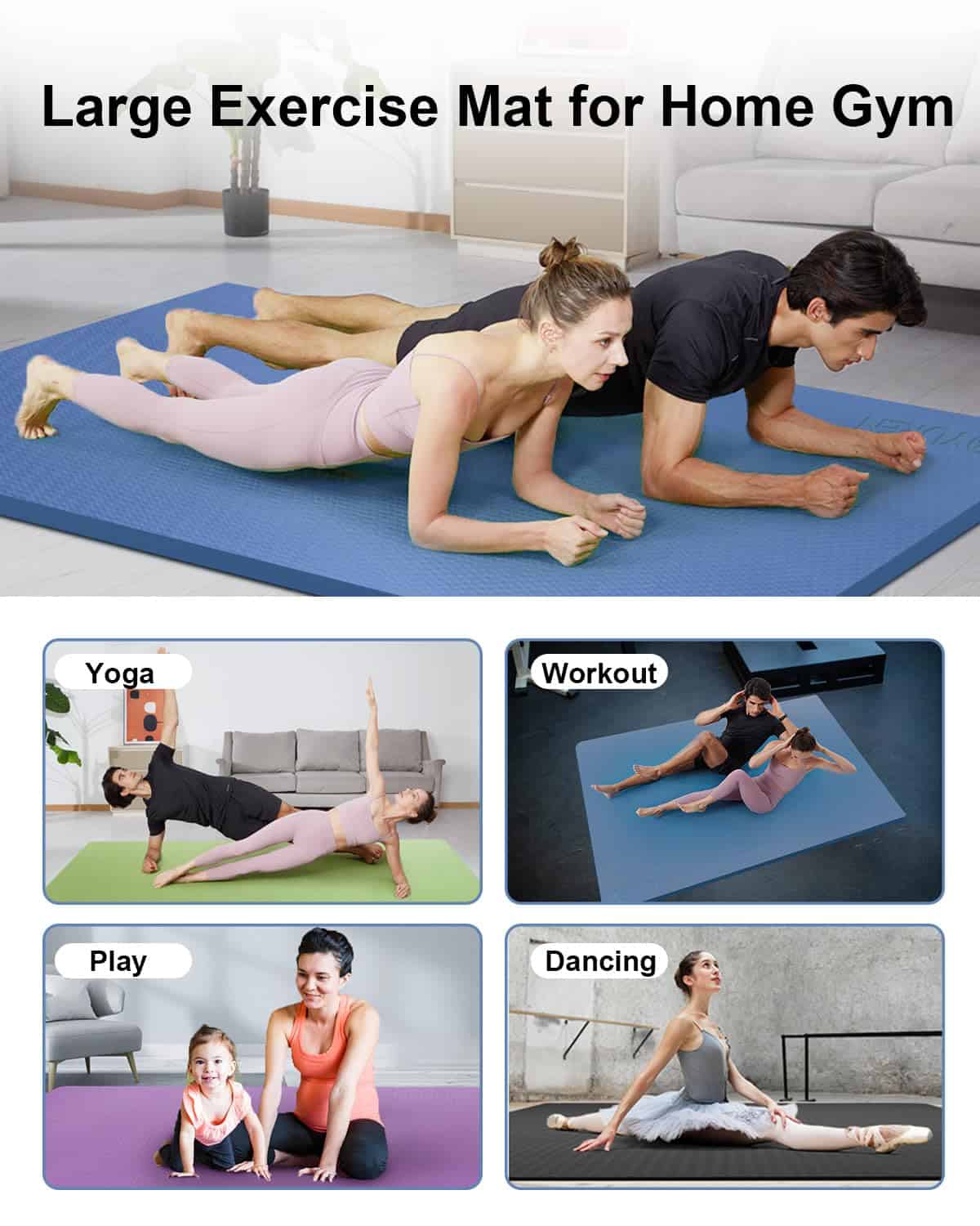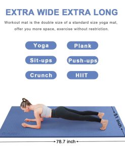 1. Tapete de ejercicios versátil: Tapete extra grande de 78.7″x 51″ que ofrece suficiente espacio para tus entrenamientos. Ya no te preocupes por salirte del mat mientras haces ejercicios. También puede ser un tapete de juego para niños, tapetes de baile, tapete de actividades familiares al aire libre o tapete para dormir en la oficina.