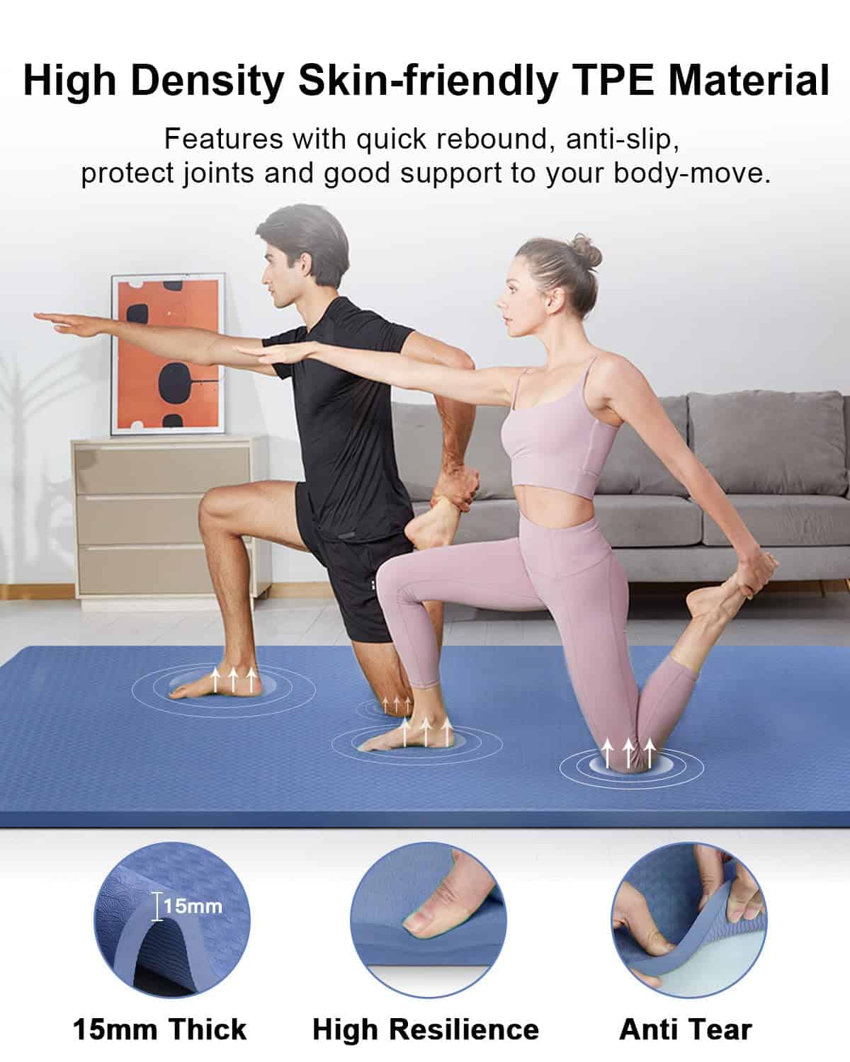 4. Material ecológico TPE: El tapete grueso está hecho de TPE de calidad premium que no es tóxico y no desprende olores irritantes, y es más suave, respetuoso con la piel, ligero y reciclable. Con una mejor resistencia a la abrasión y al desgarro que el tapete de espuma NBR.