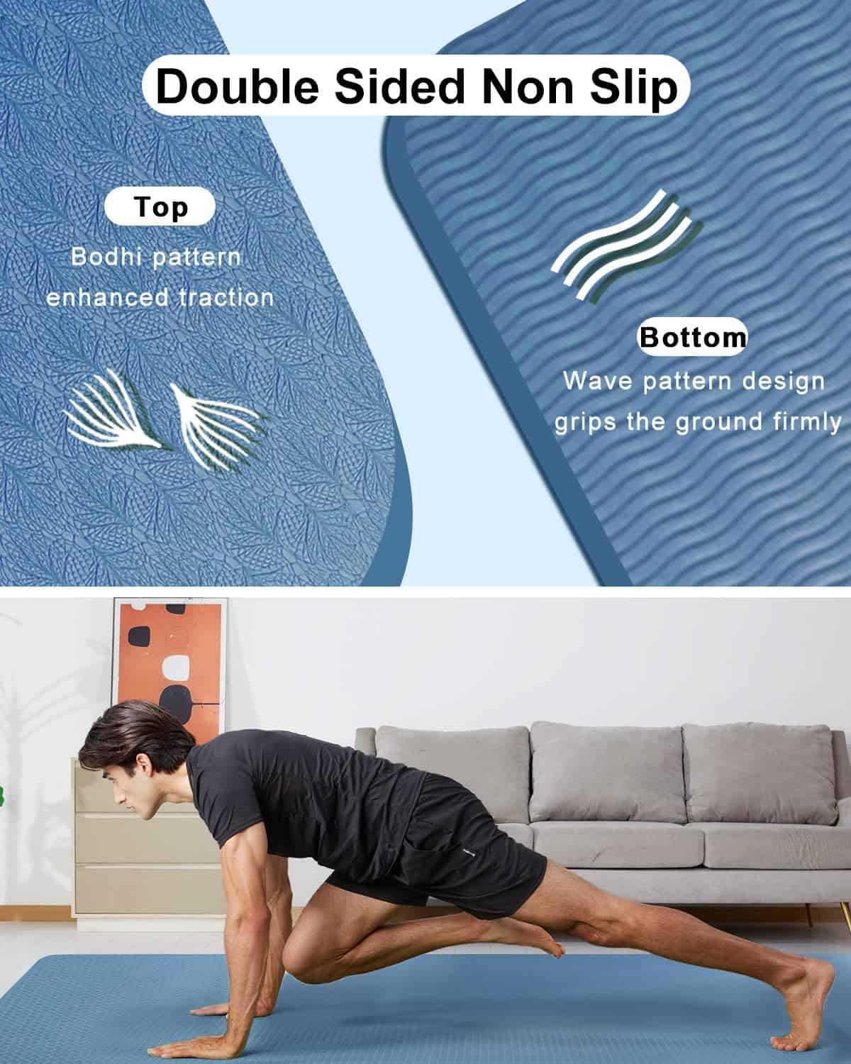 3. Tapete de ejercicio Antideslizante de Doble Cara: Con superficies antideslizantes en ambos lados para una tracción mejorada y agarre superior. Funciona en muchas superficies, como azulejos, alfombras, madera o concreto, etc.