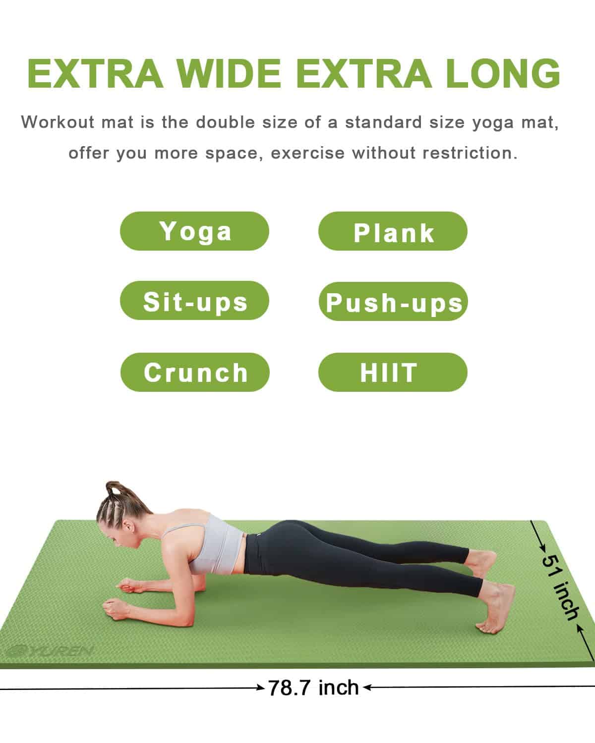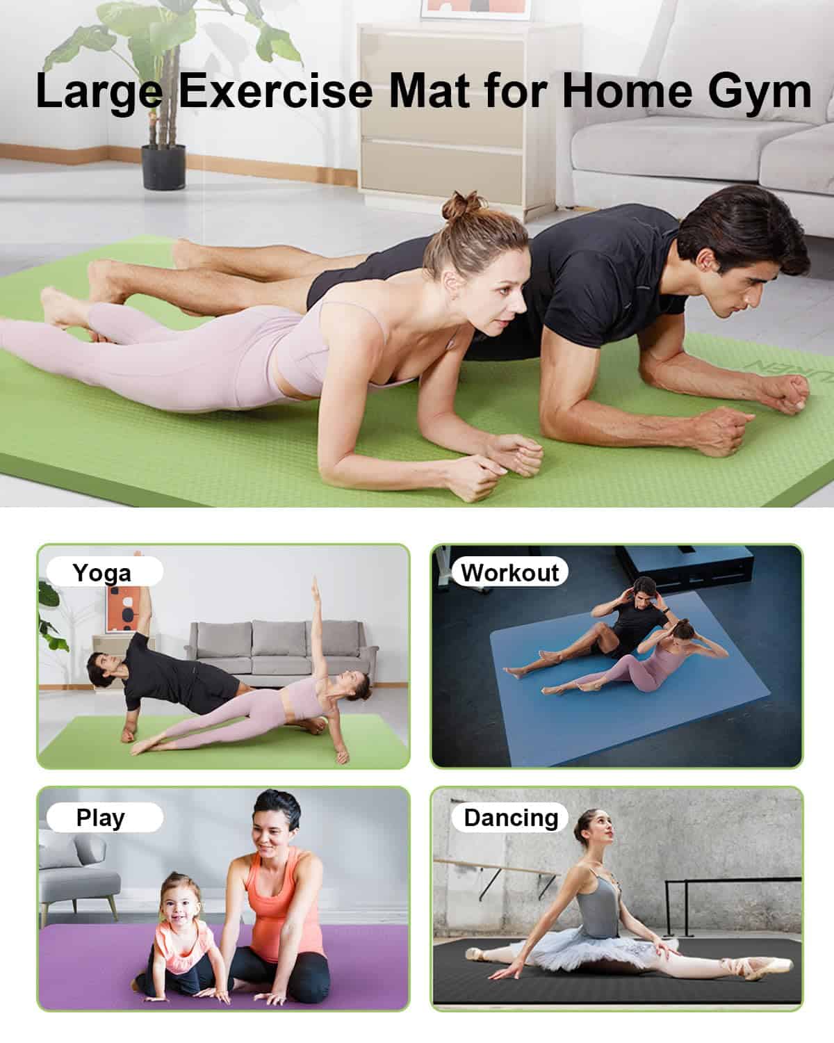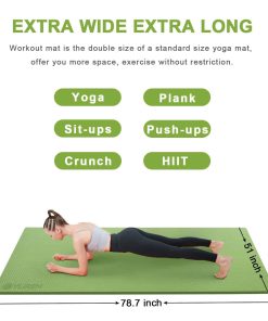 1. Tapete de fitness multiusos: Tapete extra grande de 78.7″ x 51″ que ofrece suficiente espacio para tus ejercicios. Ya no te preocupes por salirte del tapete cuando haces ejercicio. También puede ser utilizado como tapete de juego para niños, tapetes de baile, tapete de actividad familiar al aire libre o tapete para tomar siestas en la oficina.