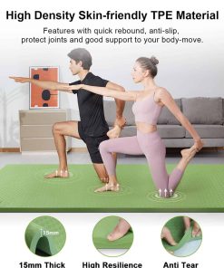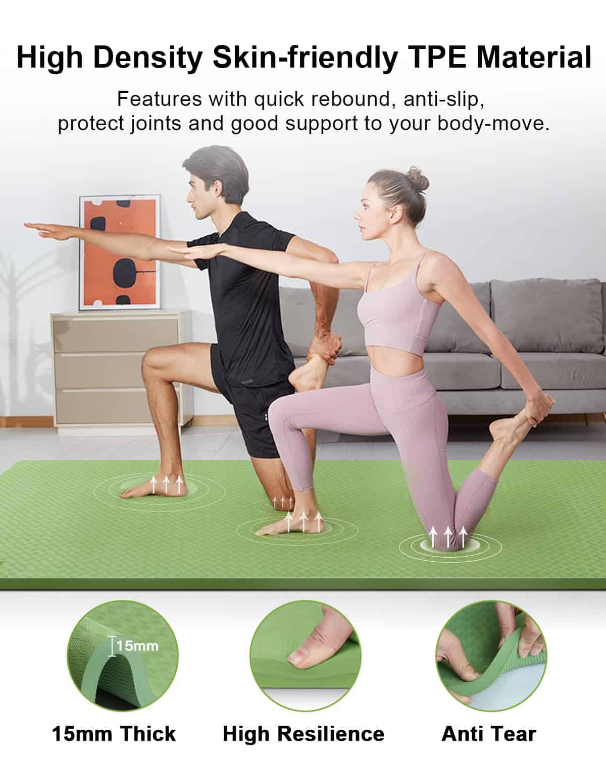 4. Material ecológico de TPE: El grueso tapete está hecho de TPE de primera calidad, que no es tóxico, no tiene olor irritante, es más suave, amigable con la piel, ligero y reciclable. Con mejor resistencia a la abrasión y al desgarro que el tapete de espuma NBR.