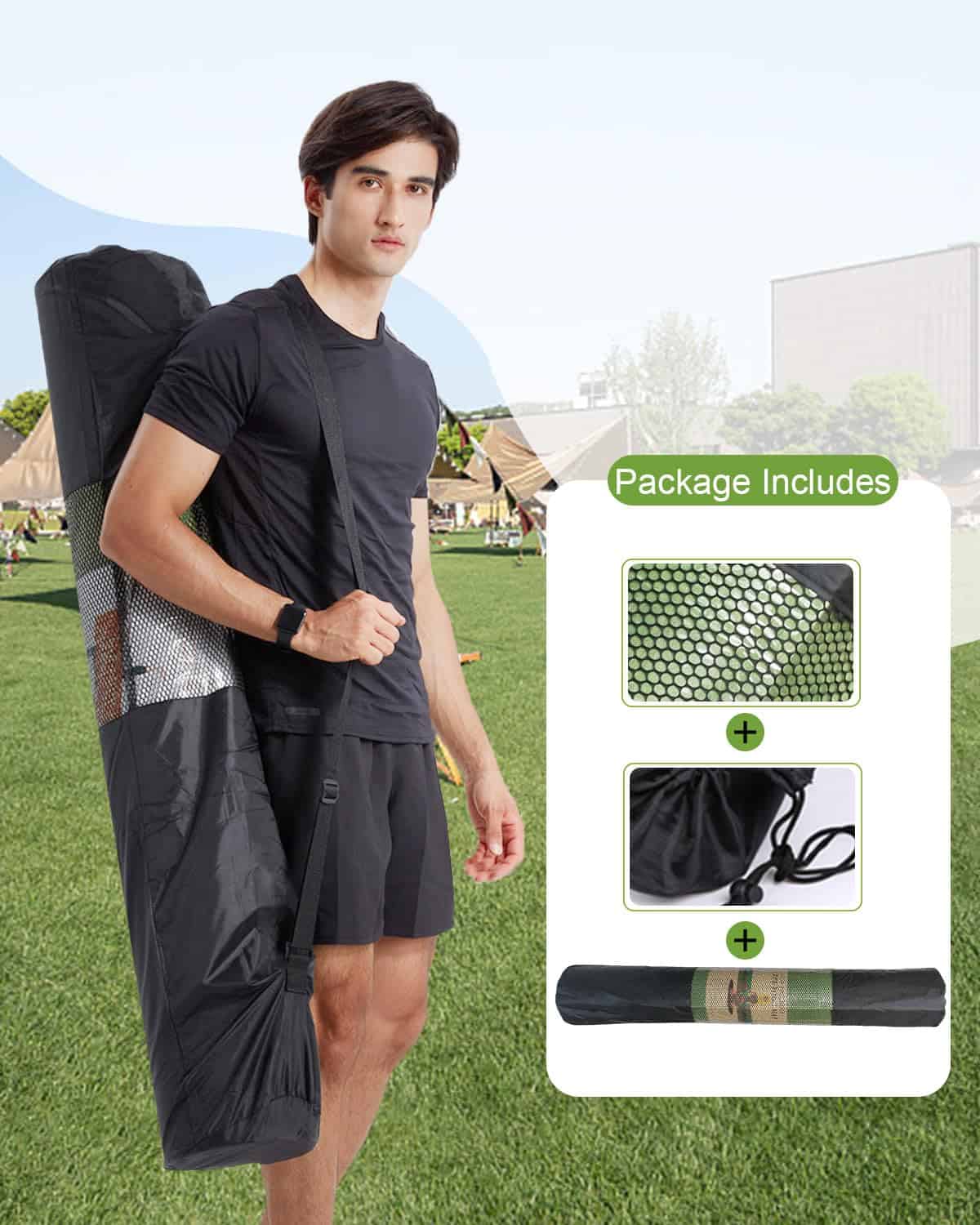 5. Fácil de limpiar y almacenar: Diseño impermeable, fácil de limpiar, el tapete se puede utilizar en interiores y exteriores. Viene con una bolsa de transporte con malla, 2 correas elásticas, fácil de almacenar. Si quieres mantener el tapete plano, te recomendamos que lo uses para hacer ejercicio en un lugar fijo.