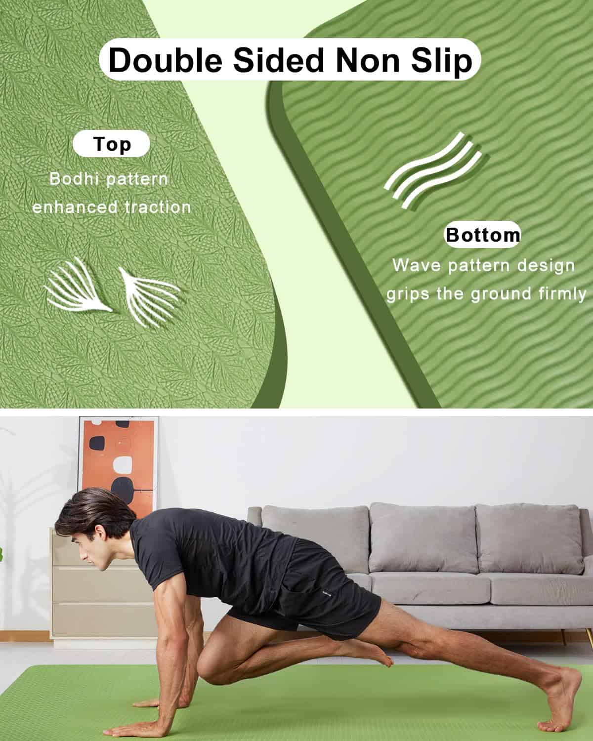 3. Tapete de ejercicio antideslizante de doble cara: Con superficies antideslizantes en ambos lados para una tracción mejorada y un agarre superior. Funciona en diferentes superficies, como azulejos, alfombras, madera o concreto, etc.