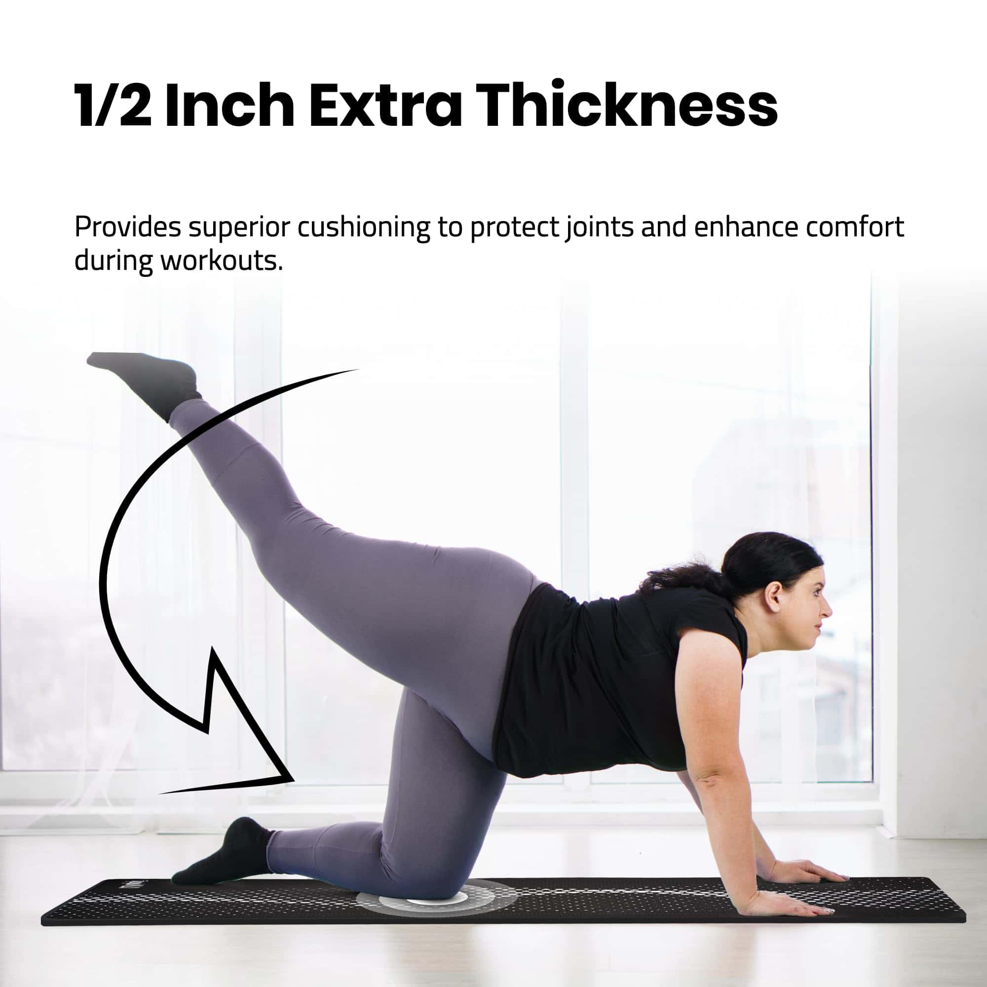 1. Extra Grueso para Mayor ComodidadNuestros tapetes de yoga extra gruesos para entrenamiento en casa tienen un grosor de 1/2 pulgada, brindando un excelente soporte y comodidad durante tus entrenamientos. ¡Di adiós al dolor de rodillas, espalda o codos al tocar el suelo!.