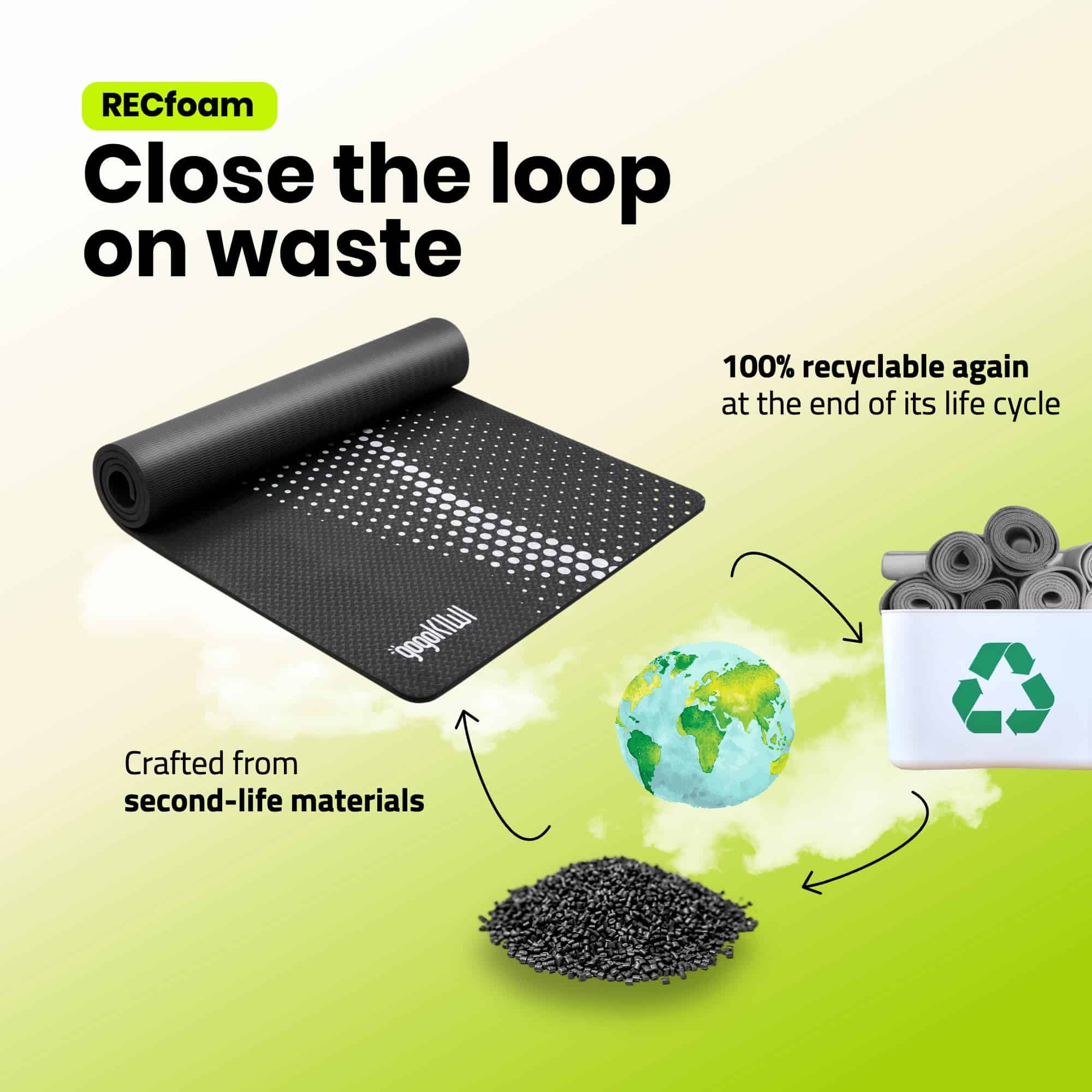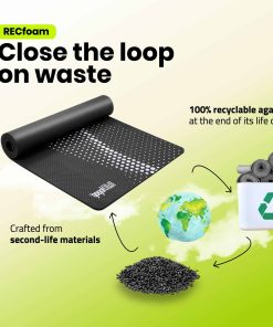 2. Reciclado y Reciclable de NuevoHecho de RecFoam premium 100% reciclable, nuestro tapete de ejercicio grueso para entrenamiento en casa es amigable con el medio ambiente. ¡Haz ejercicio con la tranquilidad de saber que no estás dañando el planeta!.
