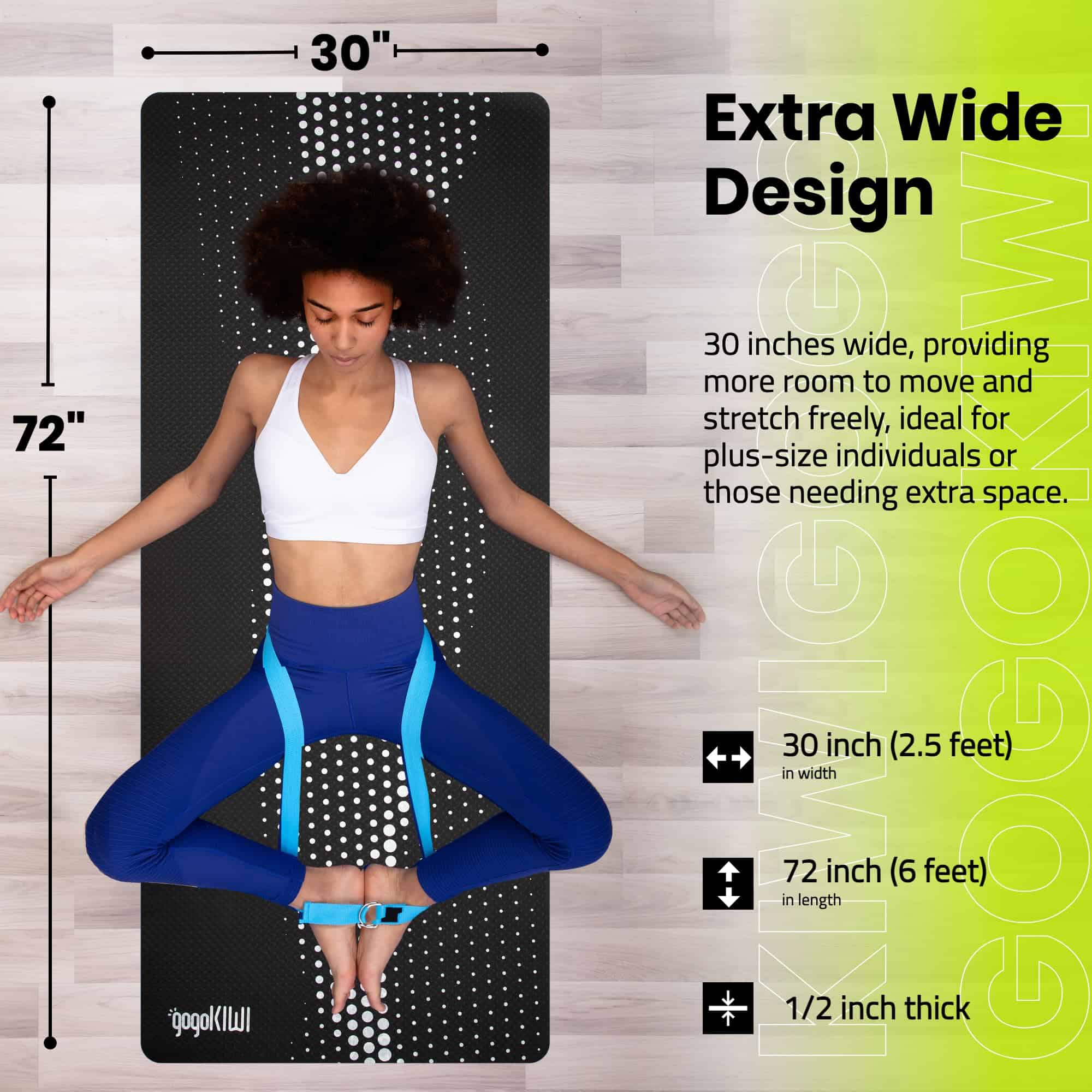 3. Extra Grande Para LibertadCon un tamaño de 72×30 pulgadas, nuestro tapete de yoga extra ancho te brinda más espacio que los tapetes tradicionales. ¡Disfruta de la libertad de moverte y realizar tus ejercicios sin restricciones!.