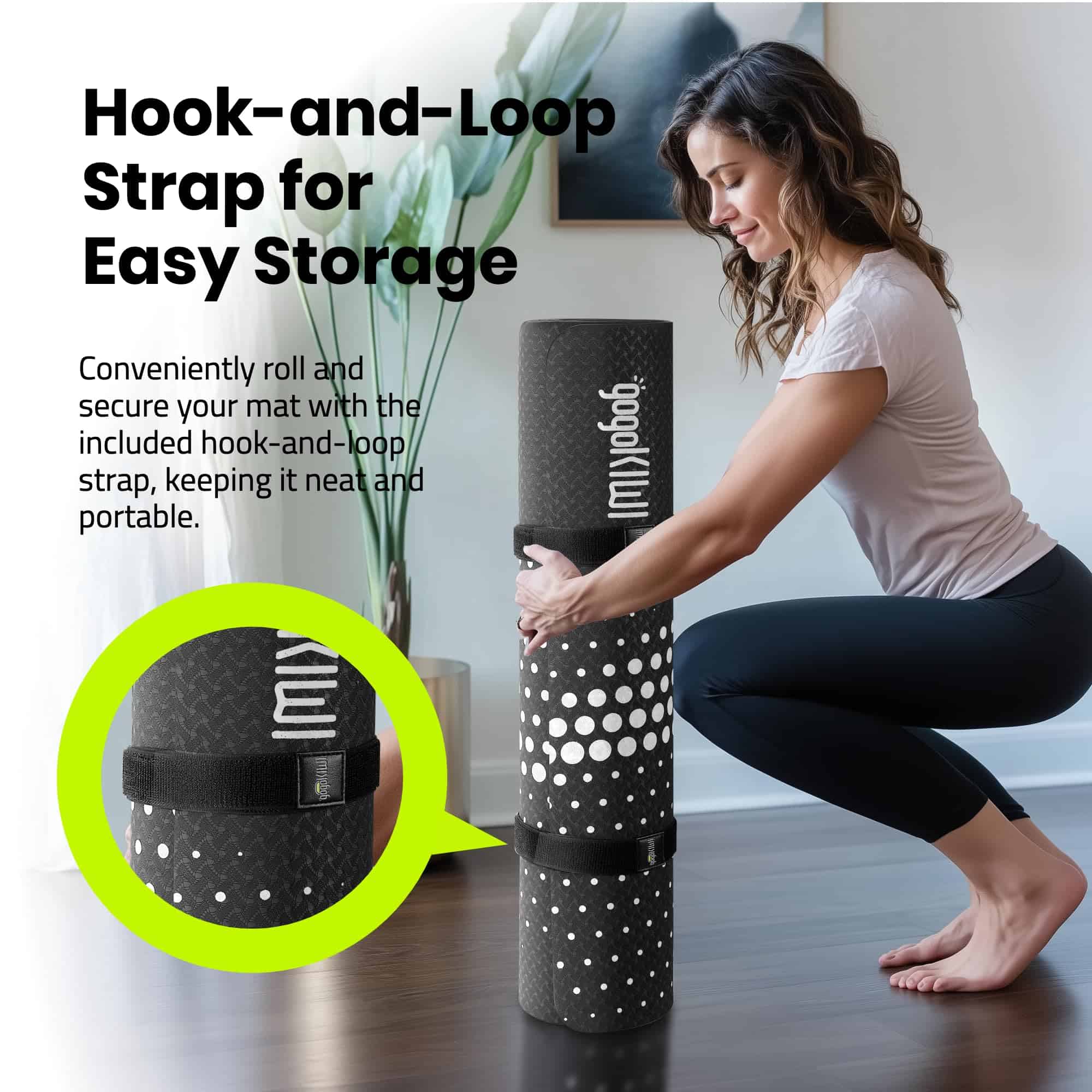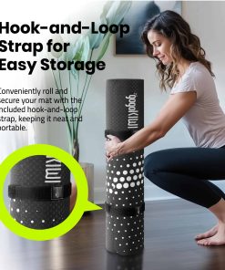 5. Almacenamiento Fácil con AccesoriosViene con una conveniente correa de gancho y lazo para un almacenamiento y portabilidad sin problemas, manteniendo tu tapete seguro y organizado cuando no está en uso. Ideal para gimnasios en casa, estudios u exteriores