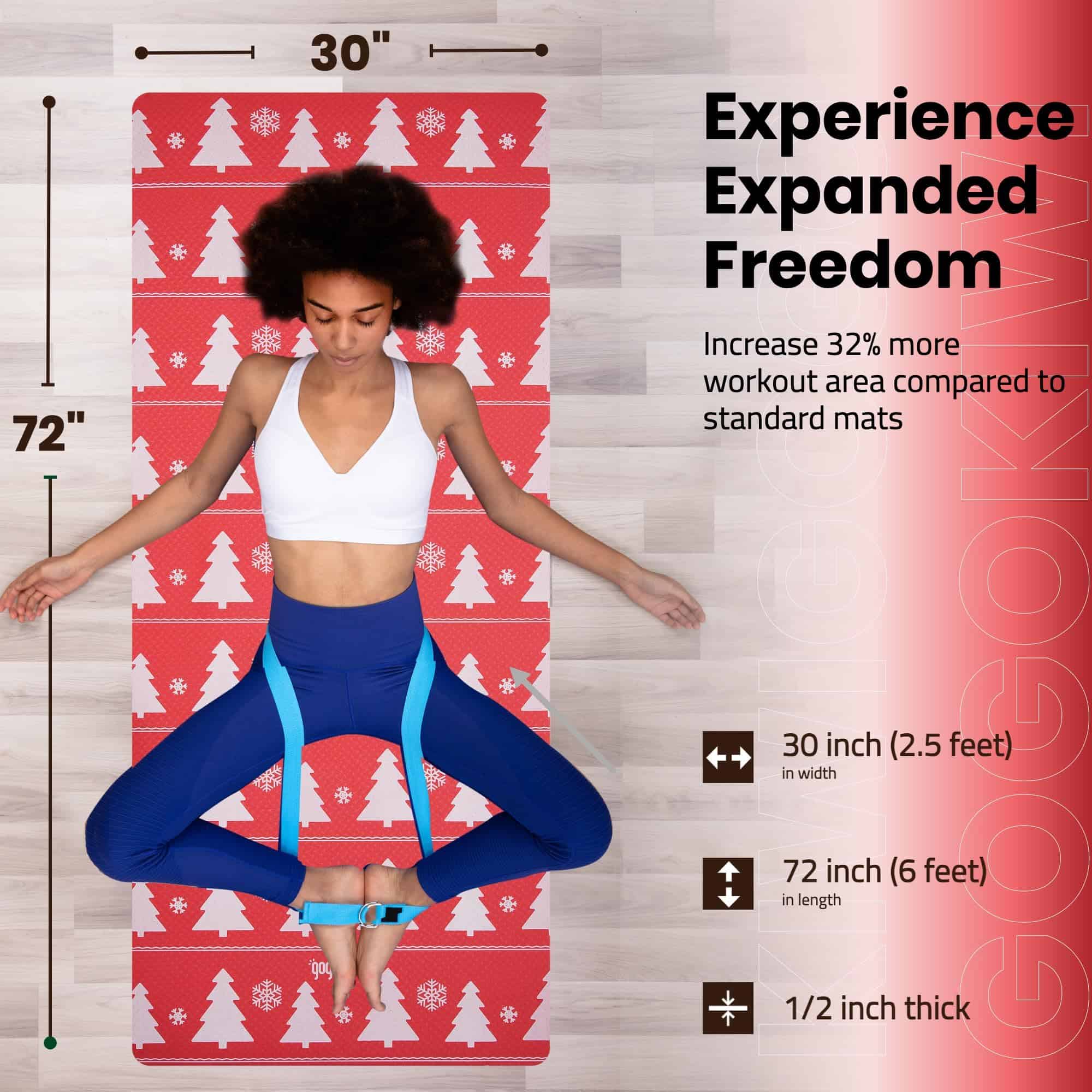 3. Extra grande para libertad Mide 72×30 pulgadas, nuestro tapete de yoga extra ancho te brinda más espacio que los tapetes tradicionales. ¡Disfruta de la libertad de moverte y realizar tus ejercicios sin restricciones!