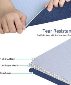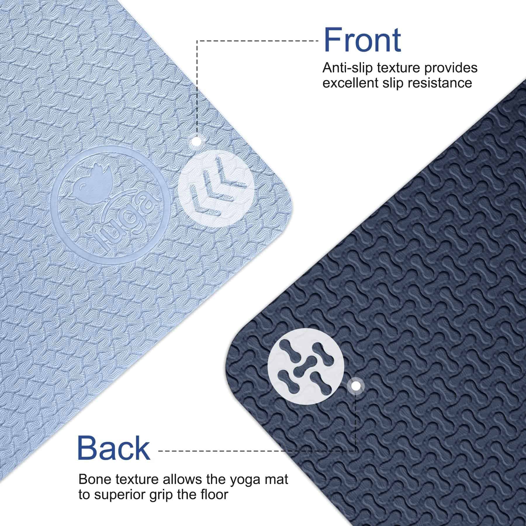 IUGA ofrece un tapete de yoga de alta calidad que es antideslizante, resistente a la rotura y ecológico. Con superficies no resbaladizas en ambos lados y un patrón de hueso exclusivo en la parte inferior, este tapete te permite realizar cualquier movimiento con confianza. La capa intermedia de malla aumenta la resistencia a la rotura, mejorando la durabilidad y la calidad del tapete para tu práctica. Hecho de material TPE certificado por SGS, este tapete no contiene látex ni PVC, lo que lo hace seguro para ti y para el medio ambiente. Con un peso ligero de 2 libras y una correa de transporte gratis, este tapete es perfecto para viajar. Las instrucciones de cuidado fáciles de seguir garantizan que tu tapete de yoga se mantenga en óptimas condiciones durante mucho tiempo.