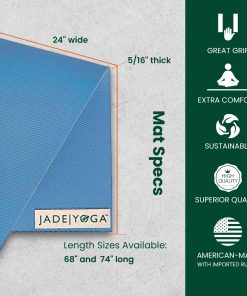 Los tapetes JadeYoga están diseñados para ofrecer un nivel excepcional de tracción, comodidad y durabilidad. Fabricados con caucho natural, proporcionan un agarre superior y una mayor amortiguación en comparación con los tapetes hechos de cauchos sintéticos. El tapete Fusion está diseñado específicamente para yoga restaurativo, Yin yoga, Pilates, fitness de núcleo, o cualquier otra ocasión en la que necesite comodidad adicional. Con un grosor de 5/16 pulgadas, el tapete Fusion brinda una amortiguación extra para garantizar la máxima comodidad durante su práctica. Además, los tapetes JadeYoga están libres de PVC, ftalatos, metales pesados y otros productos químicos agresivos, lo que los hace seguros para usted y para el medio ambiente. Fabricados en EE. UU. con caucho importado obtenido de manera sostenible, los tapetes JadeYoga reflejan un compromiso con la sostenibilidad y la responsabilidad ambiental. Por cada tapete vendido, Jade se compromete a plantar un árbol a través de su asociación con Trees for the Future, contribuyendo a la reforestación y al cuidado del planeta. Experimente la calidad, el confort y la eco-amigabilidad de los tapetes de yoga Jade fusionando su práctica con el cuidado de la tierra.