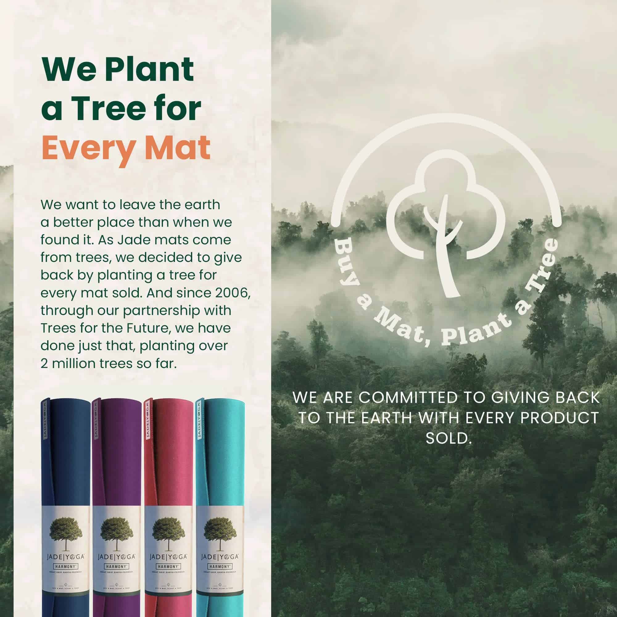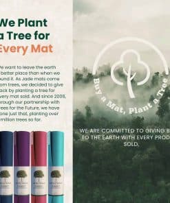 5. SÉ EL CAMBIO CON JADEYOGA: Cuando eliges JadeYoga, no solo estás invirtiendo en un tapete de yoga premium; estás contribuyendo activamente a un cambio positivo. Con cada tapete vendido, nos comprometemos a devolverle a la tierra. Hemos prometido plantar un árbol por cada tapete comprado. Desde 2006, en asociación con Trees for the Future, ya hemos plantado más de 2.5 millones de árboles, marcando una diferencia tangible en los esfuerzos de reforestación y preservando nuestro planeta para las generaciones futuras.