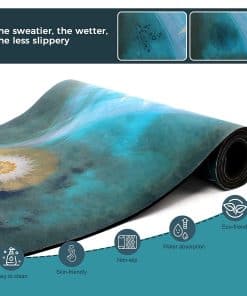 La gamuza sintética ultra absorbente en la parte superior del tapete añade un toque de lujo y funcionalidad. Esta capa suave se vuelve más adherente a medida que tus manos o pies se humedecen, lo que lo convierte en el tapete ideal para las prácticas de yoga calientes. No es necesario llevar toallas adicionales, ya que este tapete absorbe el sudor de manera eficaz.
