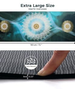 Con un grosor perfecto de 6 mm(1/4″), este tapete de yoga ofrece una combinación óptima de amortiguación y soporte para una amplia variedad de movimientos de yoga. Su diseño único con patrones de impresión exclusivos lo hace destacar entre los demás tapetes de yoga tradicionales. Además, la impresión anti-decoloración garantiza que el tapete mantendrá su aspecto atractivo incluso después de un uso prolongado.