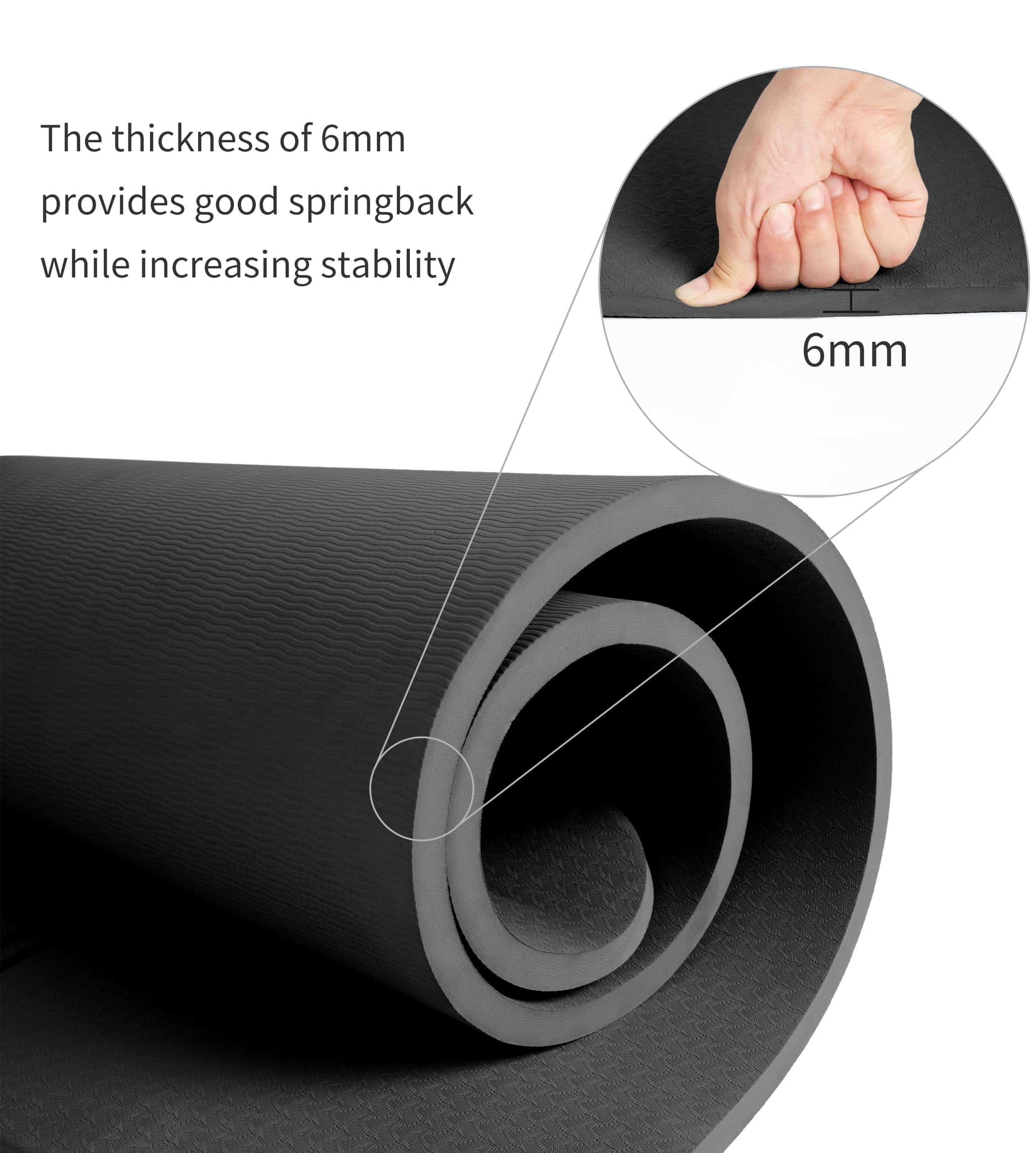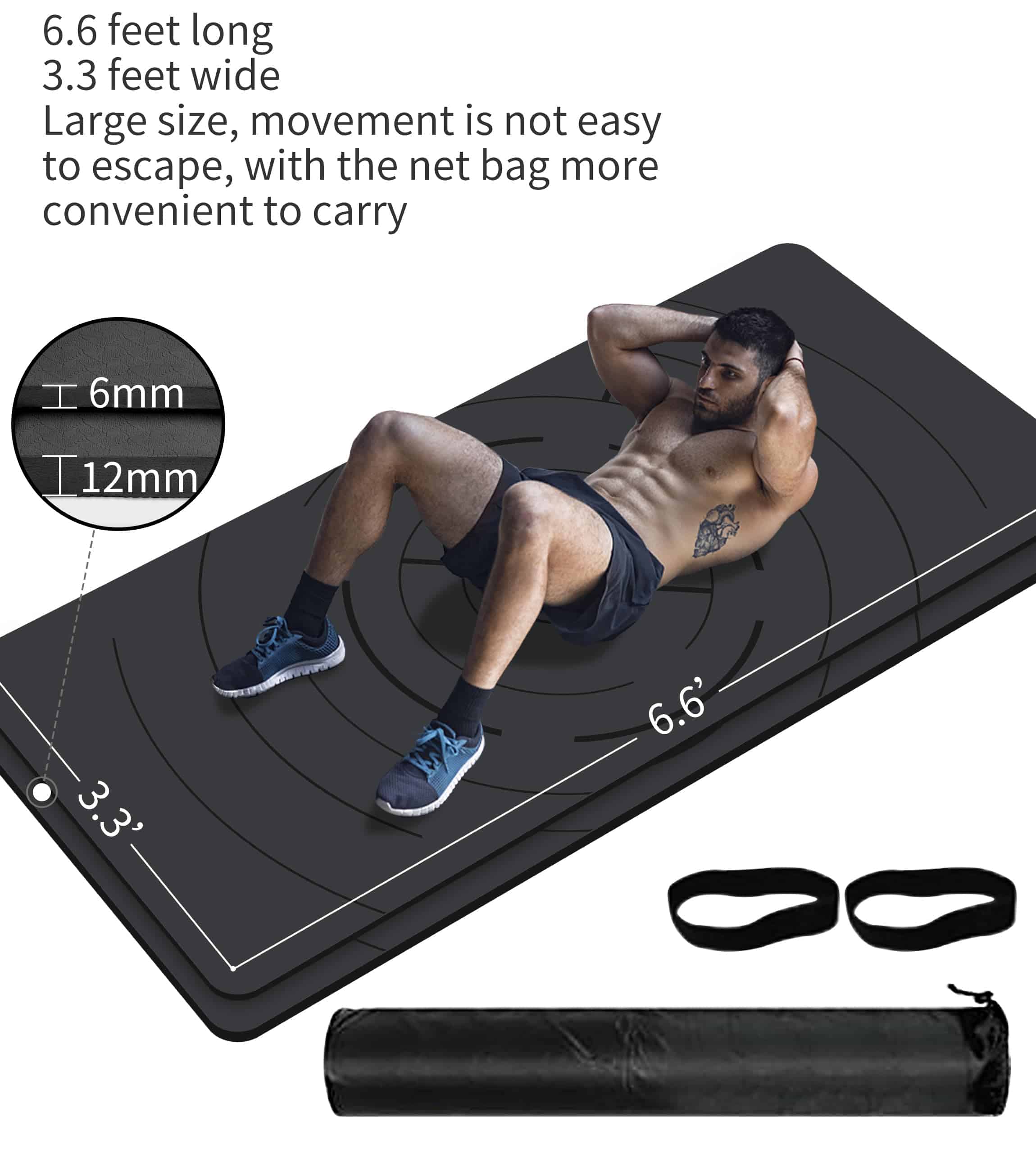 1. Extra Size: Largo extra de 200CM, ancho extra de 100CM, grueso extra de 6MM, apto para fitness descalzo. Ideal para estudios de yoga en casa. Nunca te sientas restringido o limitado por el tamaño de tu amplia esterilla de gimnasio. Se puede utilizar para cualquier postura de yoga, pilates, meditación, estiramiento, cardio ligero u otras rutinas de ejercicio. Funciona muy bien en la mayoría de las superficies del piso. 2. Doble Cara y Antideslizante: La amplia esterilla de yoga tiene superficies reversibles antideslizantes para que puedas realizar cualquier movimiento con confianza. La textura de doble cara evita que la esterilla de entrenamiento se deslice por el piso. La superficie sutilmente texturizada evita que las manos y los pies se resbalen de la posición para que puedas mantener las posturas sin importar lo vigorosa que sea tu práctica. Perfecto para yoga caliente, esterilla de pilates, meditación o estiramiento. Lo mejor para practicar muchas formas de yoga. No resbala en suelo de madera, suelo de baldosa, suelo de cemento. 3. Gimnasio en Casa Instantáneo en Cualquier Habitación: Adiós a la membresía del gimnasio. Simplemente desabrocha y desenrolla para transformar cualquier habitación de tu casa en tu propio gimnasio. Nuestras esterillas de ejercicio son lo suficientemente grandes para cualquier entrenamiento cardiovascular, de fuerza o baile, incluidos P90x, TAM, Insanity, T25, Zumba, TRX, pesas rusas, saltar la cuerda y más. 4. Rendimiento Perfecto: 6mm de grosor ofrece la experiencia más cómoda para todos los niveles de yoguis. La mayoría de las esterillas son o demasiado delgadas o demasiado gruesas. Nuestras esterillas de yoga están garantizadas para proporcionar el nivel óptimo de amortiguación y protección para tus articulaciones y rodillas, permitiéndote seguir agarrando el suelo para mantener el equilibrio. 5. FÁCIL DE TRANSPORTAR: Viene incluida una bolsa de transporte y una correa de transporte, es fácil de llevar al gimnasio, clase de fitness, pilates, entrenamientos, gimnasia. No solo como una esterilla de yoga, también puede ser una esterilla de entrenamiento. Simplemente lleva la esterilla contigo y podrás hacer ejercicio en interiores o al aire libre.