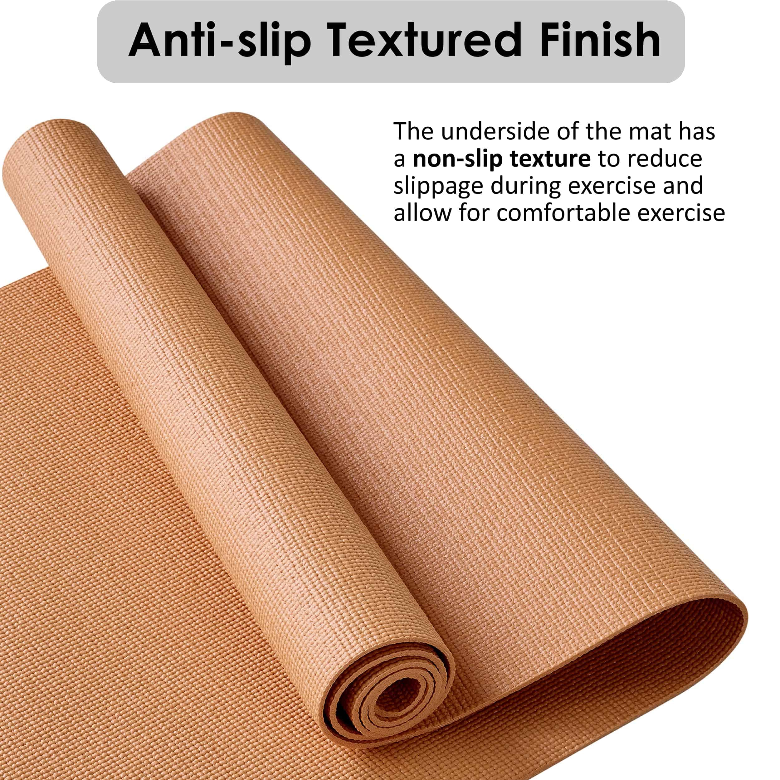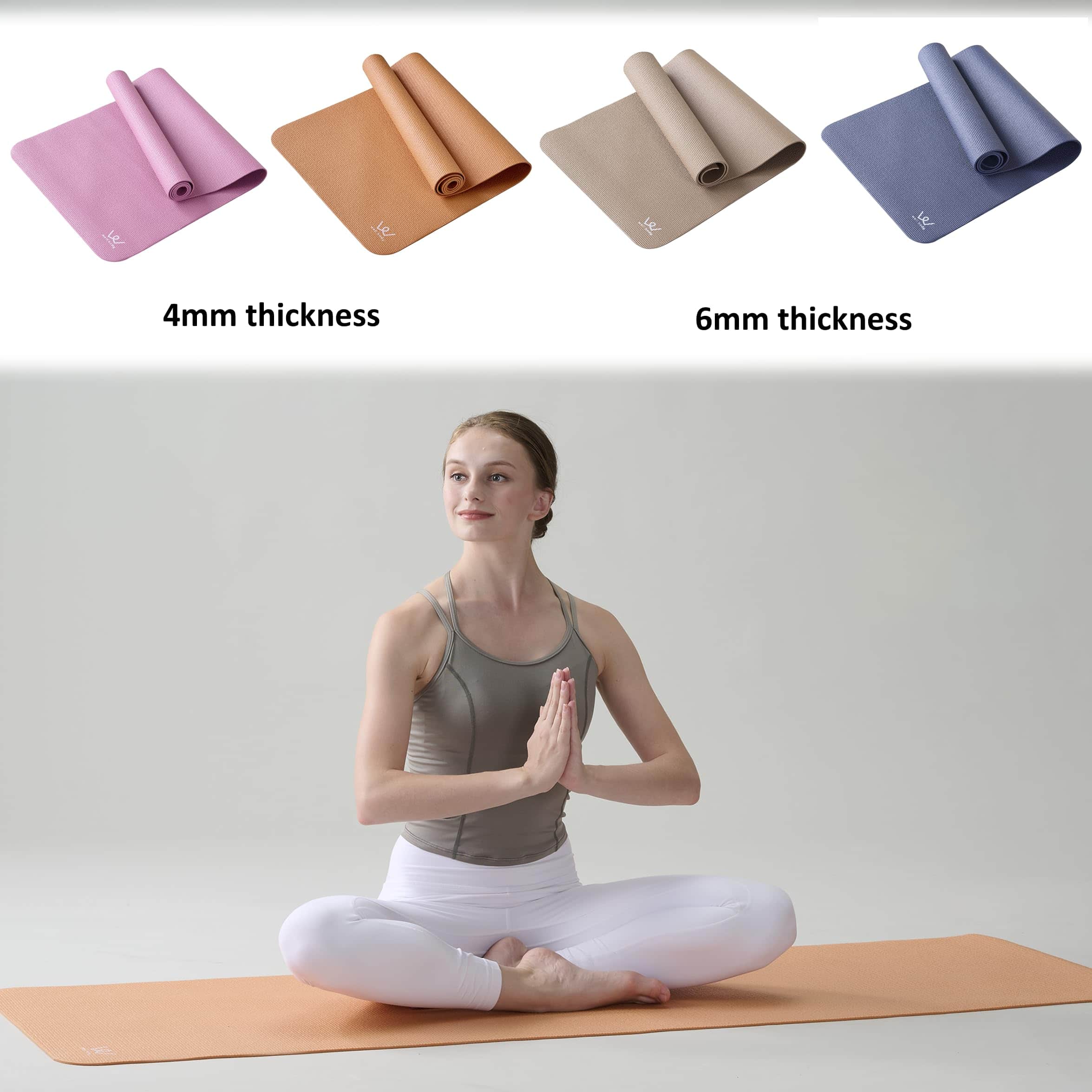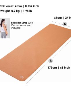 Tapete de yoga ligero y fácil de transportar. Pesa menos de 2 libras, lo que lo hace perfecto para llevar a una clase de yoga o para una cómoda sesión de yoga al aire libre. Viene con una correa para el hombro para que puedas llevarlo sin preocuparte por ocupar tus manos. El reverso del tapete tiene un acabado antideslizante para reducir resbalones durante el ejercicio y permitir un ejercicio cómodo. Aunque es ligero, absorbe los impactos del cuerpo y mantiene el movimiento. Disponible en cuatro colores elegantes. El tapete está hecho de PVC (Cloruro de polivinilo) y la correa de nylon. Tamaño del tapete: 173 x 61 x 0.4 cm / 68″ x 24″ x 0.15″. Peso del tapete: 0.9 kg / 1.98 lb. Incluye correa para el hombro con cierre de velcro.