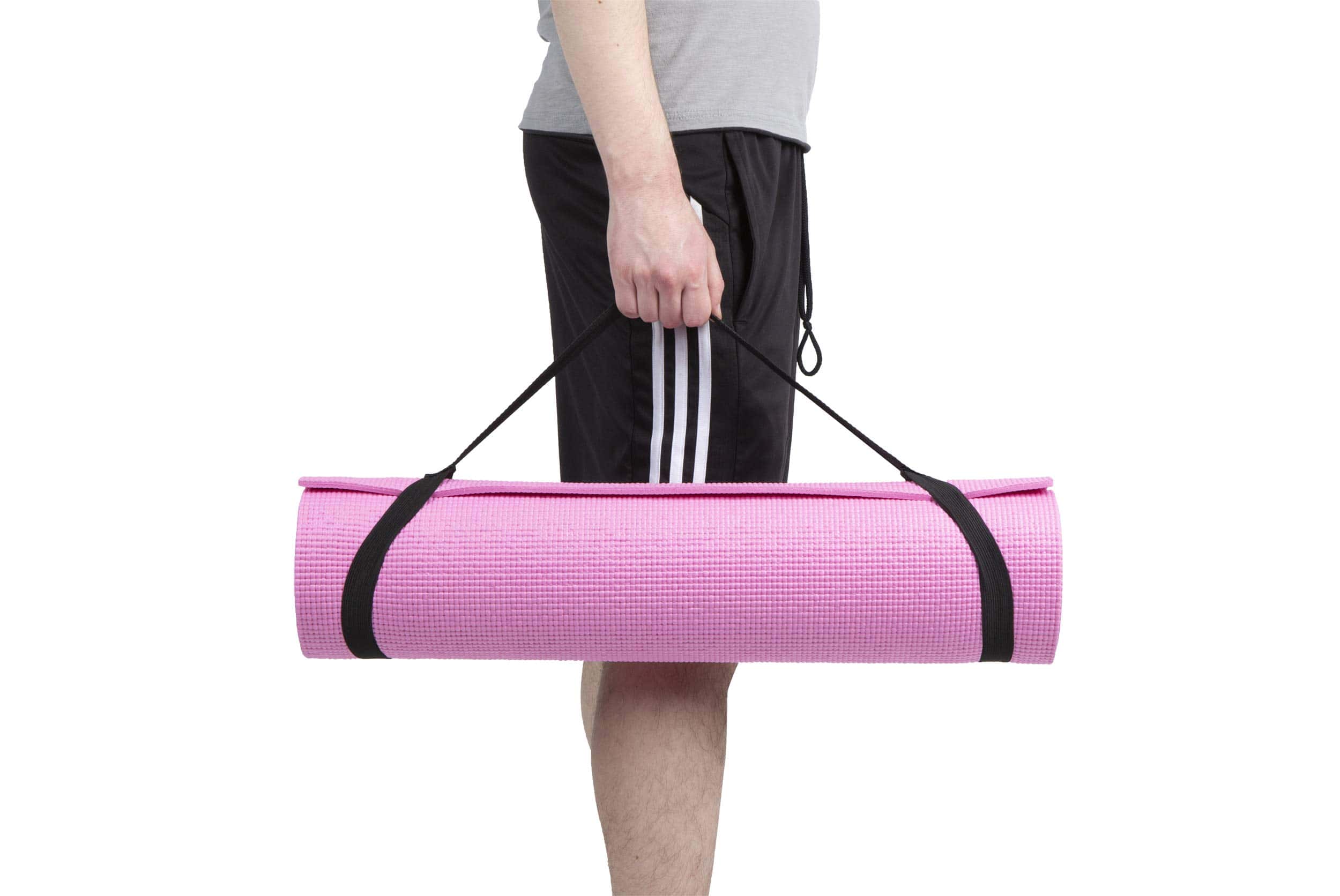Con una red integrada antidesgarros y material de alta calidad, este tapete puede ser utilizado para todo tipo de posturas de yoga y rutinas de ejercicio sin preocuparse por dañar el tapete acolchado. Fácil de limpiar, simplemente límpielo con toallitas o un paño húmedo suave. Incluye correa de transporte para llevarlo cómodamente al gimnasio, clase de pilates, al parque o a casa de un amigo para una sesión de ejercicios amistosa. Cuando no esté en uso, puede enrollarlo y guardarlo en un armario para un almacenamiento fácil. Color: Rosa Material: PVC Dimensiones: 68 L x 24 W x 0.3 H