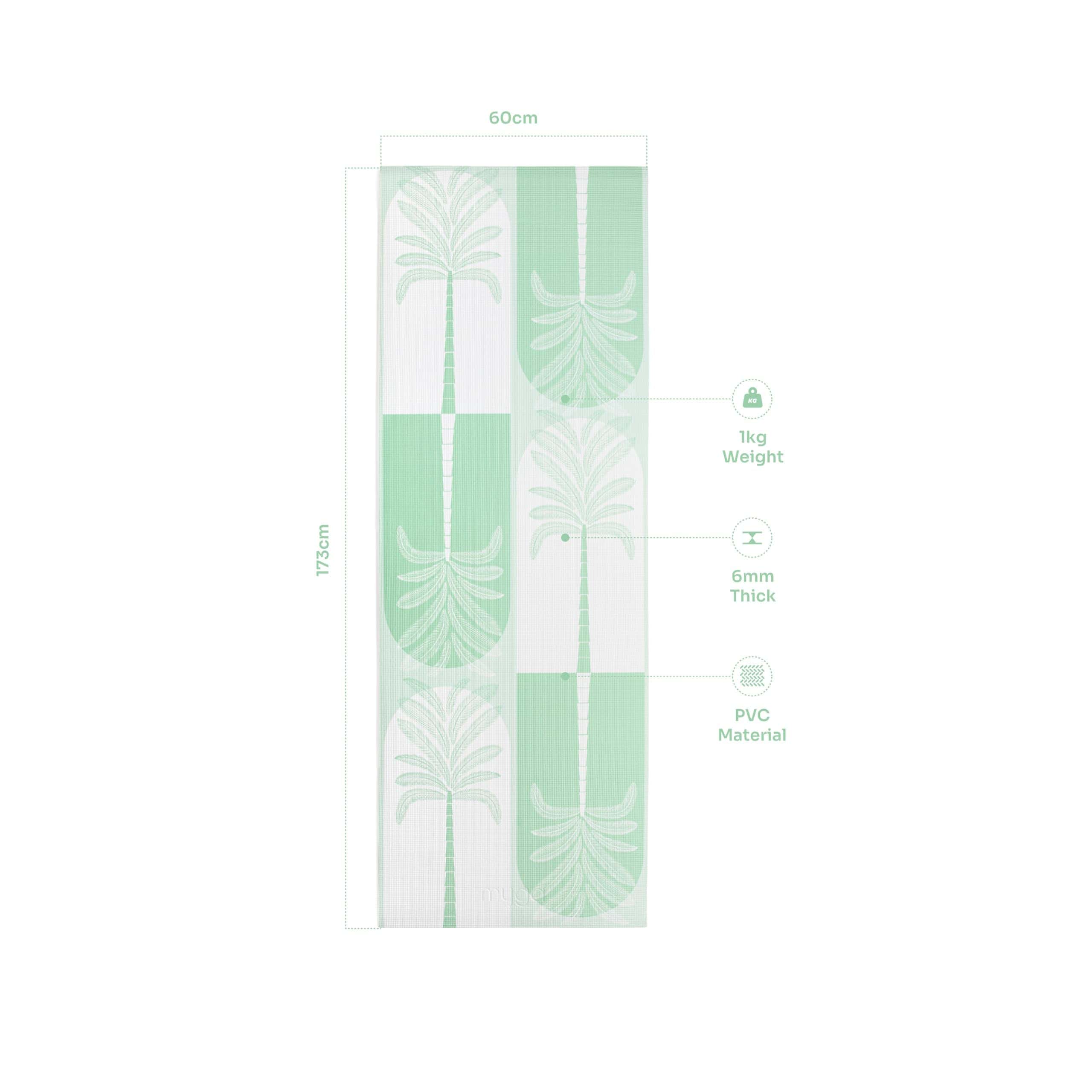 Disponible en una elección de 3 diseños elegantes para hombres y mujeres: – – Palm – Terrazzo – Chakra ESPECIFICACIONES – Material: PVC – Dimensiones: 68.1 pulgadas x 24 pulgadas (173 cm x 61 cm) | Grosor: 0.24 pulgadas (6 mm) – Peso: 3.08 libras (1.4 kg) Instrucciones de Cuidado – Limpiar con un paño húmedo limpio. Dejar secar al aire, lejos de la luz directa del sol. – No apto para entrenamientos con zapatos.