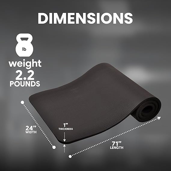 Tapete de Yoga Negro Grueso Todo Uso de 1/2 Pulgada de Alta