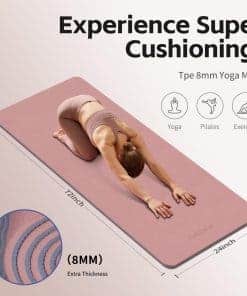 2. Tamaño Generoso y Diseño Ultra Grueso: Con medidas de 72 pulgadas de largo, 24 pulgadas de ancho y un espesor sustancial de 0.3 pulgadas, nuestro tapete de yoga ofrece un espacio expansivo para diversas posturas y brinda una amortiguación excepcional. Ya sea que estés realizando complejos movimientos de yoga o rutinas intensas de Pilates, el espesor de 0.3 pulgadas protege eficazmente tus articulaciones de superficies duras.