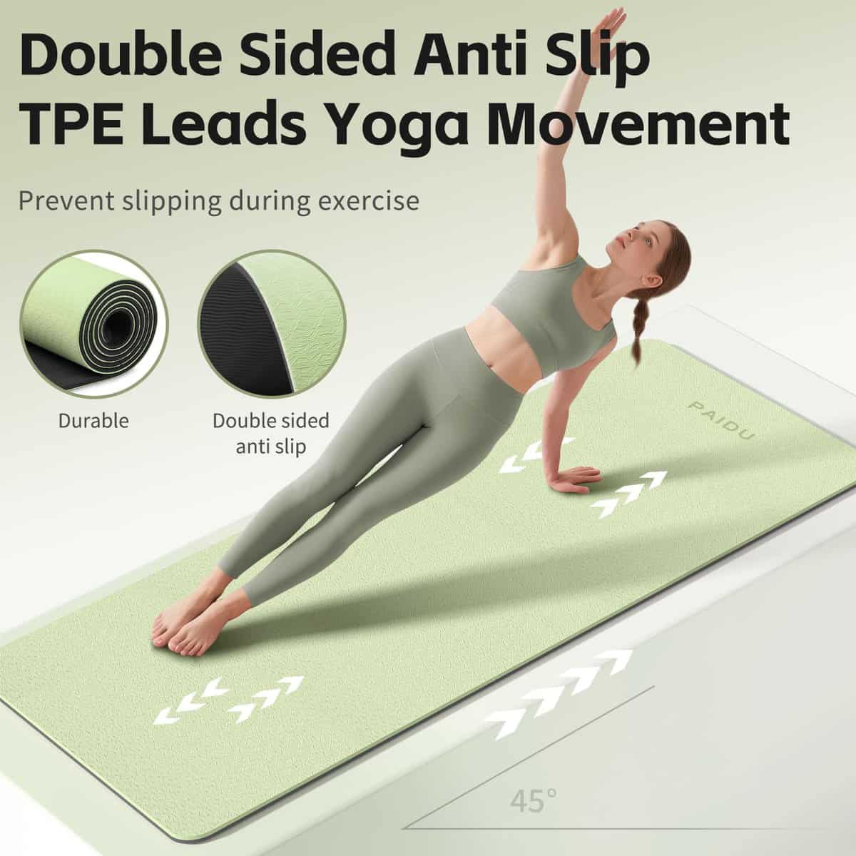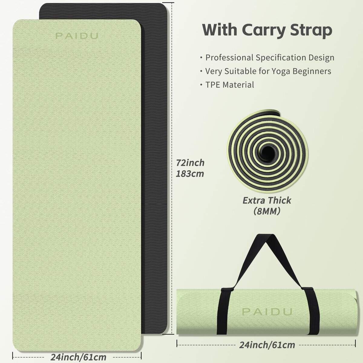 Tapete de Yoga PAIDU antideslizante y resistente a los desgarros, extra grueso y de alta resiliencia, profesional, de TPE para Mujeres, Hombres, Niños, 72″x24″x8mm, para Ejercicios, Yoga, Pilates y Ejercicios de Piso, con Correa de Transporte