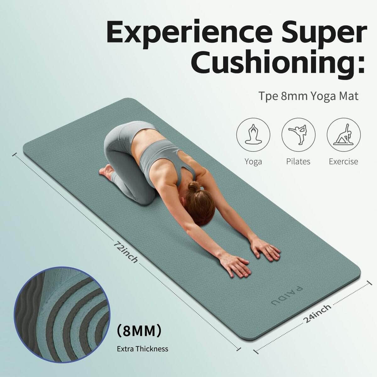 Tapete de Yoga PAIDU de 8 mm Súper Grueso de TPE, Tapete de