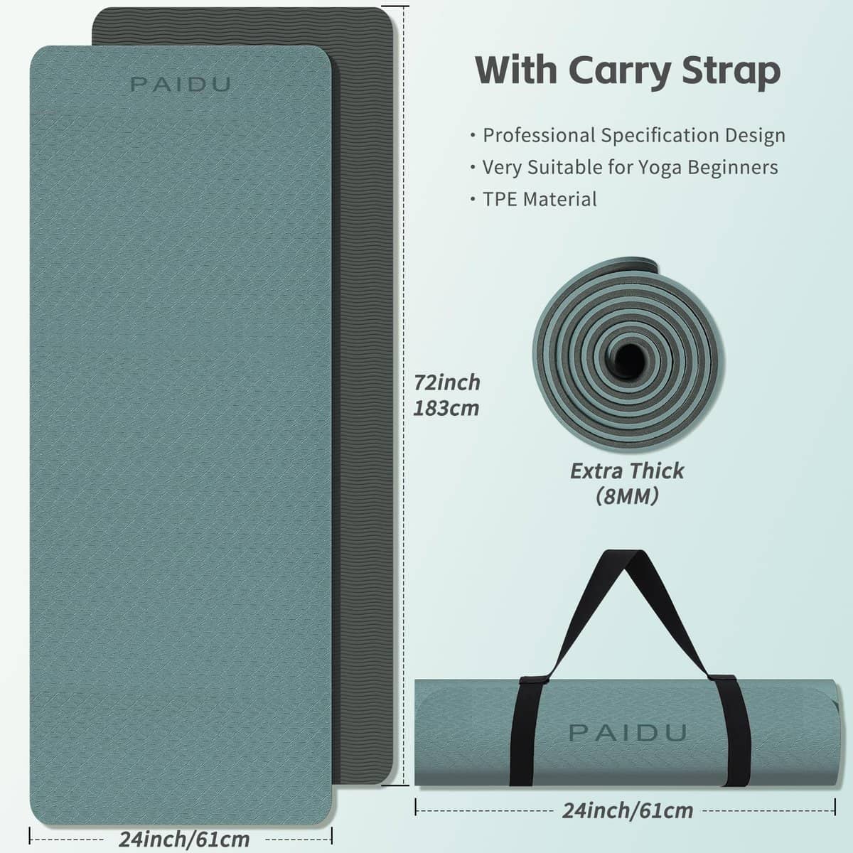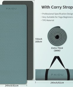 Tapete de Yoga PAIDU Antideslizante y Resistente al Desgarro, Extra Grueso de Alta Resiliencia Profesional de TPE para Mujeres, Hombres y Niños, 72″x24″x8mm, Entrenamiento, Yoga, Pilates y Ejercicio en el Piso, con Correa de Transporte