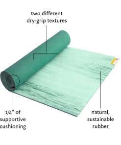 Tapete de Yoga Para Goma Hugger Mugger – Alpine – Este tapete de yoga está diseñado para brindar un agarre superior y antideslizante en ambas caras. Elaborado con goma renovable de origen sostenible, cuenta con un grosor de 1/4 de pulgada que proporciona una excelente amortiguación y absorción de impactos durante su práctica de yoga. El diseño está rayado con un patrón colorido y sereno que lo hace atractivo, duradero y de larga duración. Es importante tener en cuenta que este tapete no debe ser utilizado por personas con alergia al látex. Fabricado en Taiwán, este tapete de yoga es la elección favorita de muchos profesores de yoga.