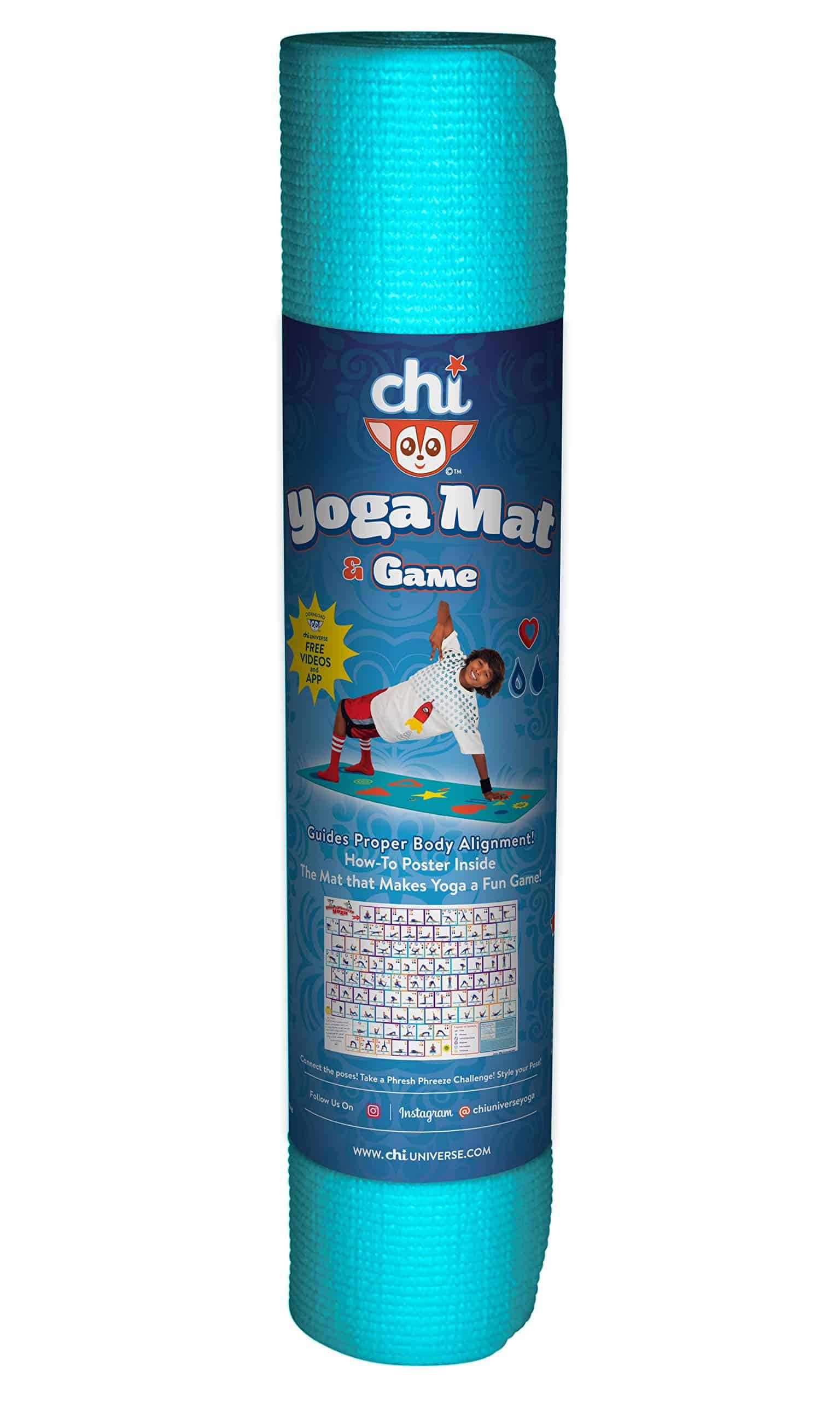 1. TAPETE DE YOGA PARA NIÑOS CHI: Tu pequeño yogi necesita un tapete que sea del tamaño adecuado. Nuestro duradero y almohadillado Tapete de Yoga Chi Phresh en color aqua mide 60 pulgadas por 18.5 pulgadas y tiene 5mm de soporte. Los tapetes Chi son fáciles de enrollar, transportar, limpiar y guardar para que tu hijo tenga una experiencia positiva en cada clase y otras actividades. Con sus brillantes colores divertidos y un sistema de juego de símbolos fáciles de seguir, los niños son naturalmente atraídos por los tapetes Chi para jugar, respirar, moverse e incluso meditar!.