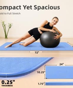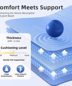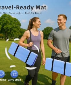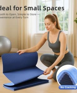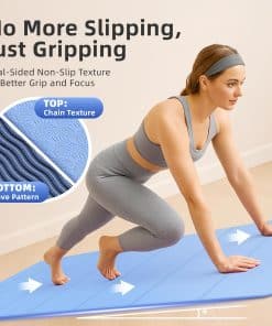 Tapete de Yoga Plegable GymCope – 72″x24″x1/4″ Ligero y Antideslizante con Correa de Transporte, Tapete de Pilates Portátil para Estiramiento, Meditación, Entrenamientos en Casa, Uso Exterior y Viajes de Negocios, Azul. Diseñado para ofrecer la máxima portabilidad y rendimiento, este tapete de yoga plegable es la elección perfecta para los entusiastas del fitness en movimiento. Con un peso de solo 1.98 lbs, este tapete es ligero y fácil de transportar, lo que lo convierte en el compañero ideal para viajes, uso en casa o sesiones de gimnasio. Su diseño inteligente plegable se ajusta fácilmente en mochilas o maletas, permitiéndote llevar tu práctica de yoga donde quiera que vayas. Con una parte superior texturizada en forma de cadena y una parte inferior con patrón ondulado, este tapete ofrece una estabilidad mejorada y una tracción superior en cualquier tipo de superficie. Ya sea que estés haciendo entrenamientos de alta intensidad (HIIT) o practicando yoga al aire libre, este tapete te mantendrá estable y seguro con cada movimiento. Construido con materiales de alta calidad y 6mm de acolchado de soporte, este tapete ayuda a reducir la presión en tus articulaciones, proporcionando una protección óptima para tus rodillas, codos y columna durante sesiones más largas o rutinas de alto impacto. Hecho de un 40% TPE, 25% EVA y 35% POE premium, este tapete ofrece un tacto suave con excelente elasticidad, durabilidad y absorción de impactos. Resistente al sudor y la suciedad, la superficie del tapete es fácil de limpiar en segundos, permitiéndote mantenerlo fresco y en óptimas condiciones, sin importar a dónde te lleve tu práctica. Perfecto para una variedad de entrenamientos, como yoga, pilates, estiramientos, HIIT y meditación, este versátil tapete es la herramienta esencial para llevar tus entrenamientos al siguiente nivel. Disfruta de la libertad de entrenar en cualquier lugar y en cualquier momento con el tapete de yoga plegable GymCope.