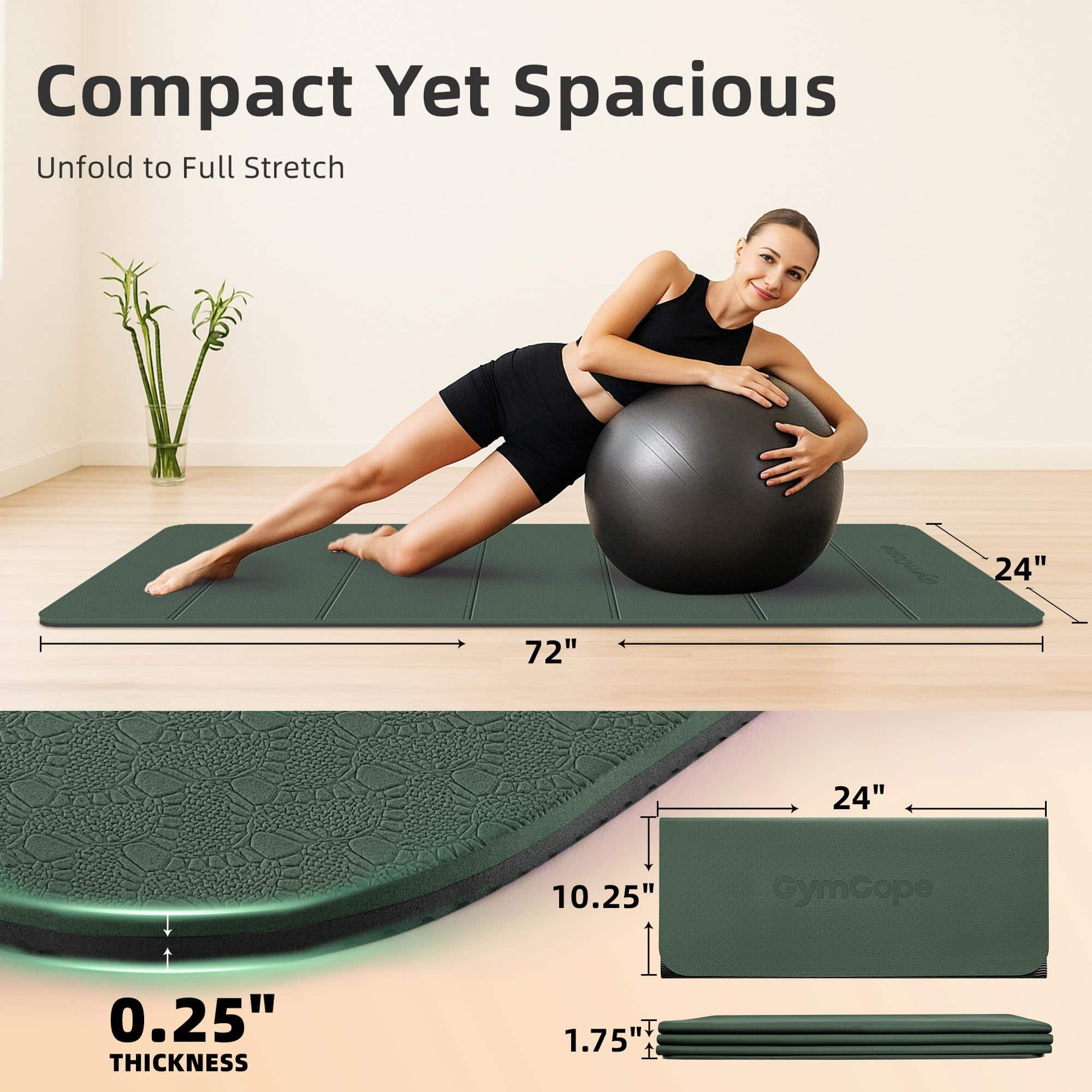 Tapete de Yoga Plegable para Viaje GymCope – 72″x24″x1/4″