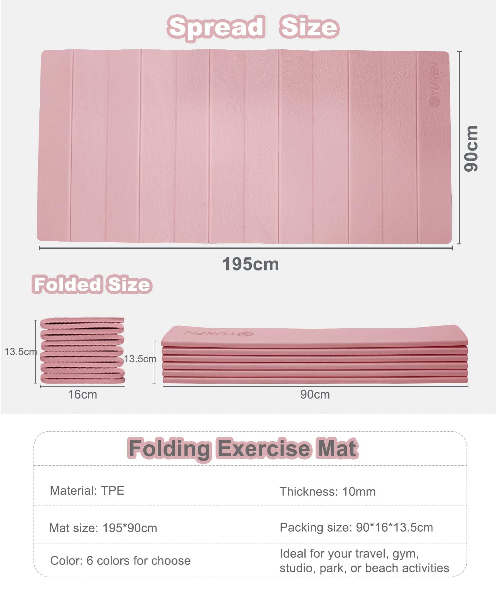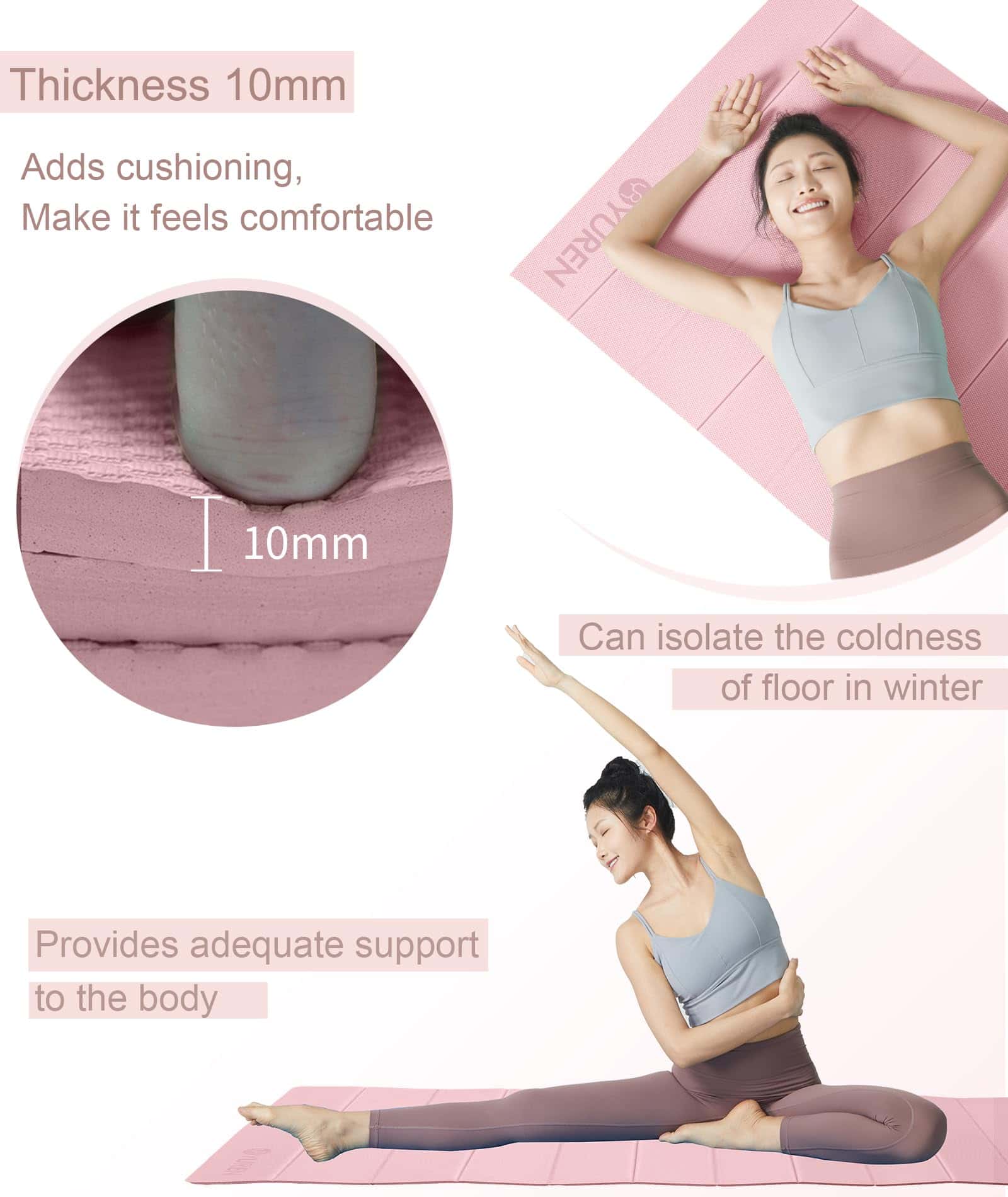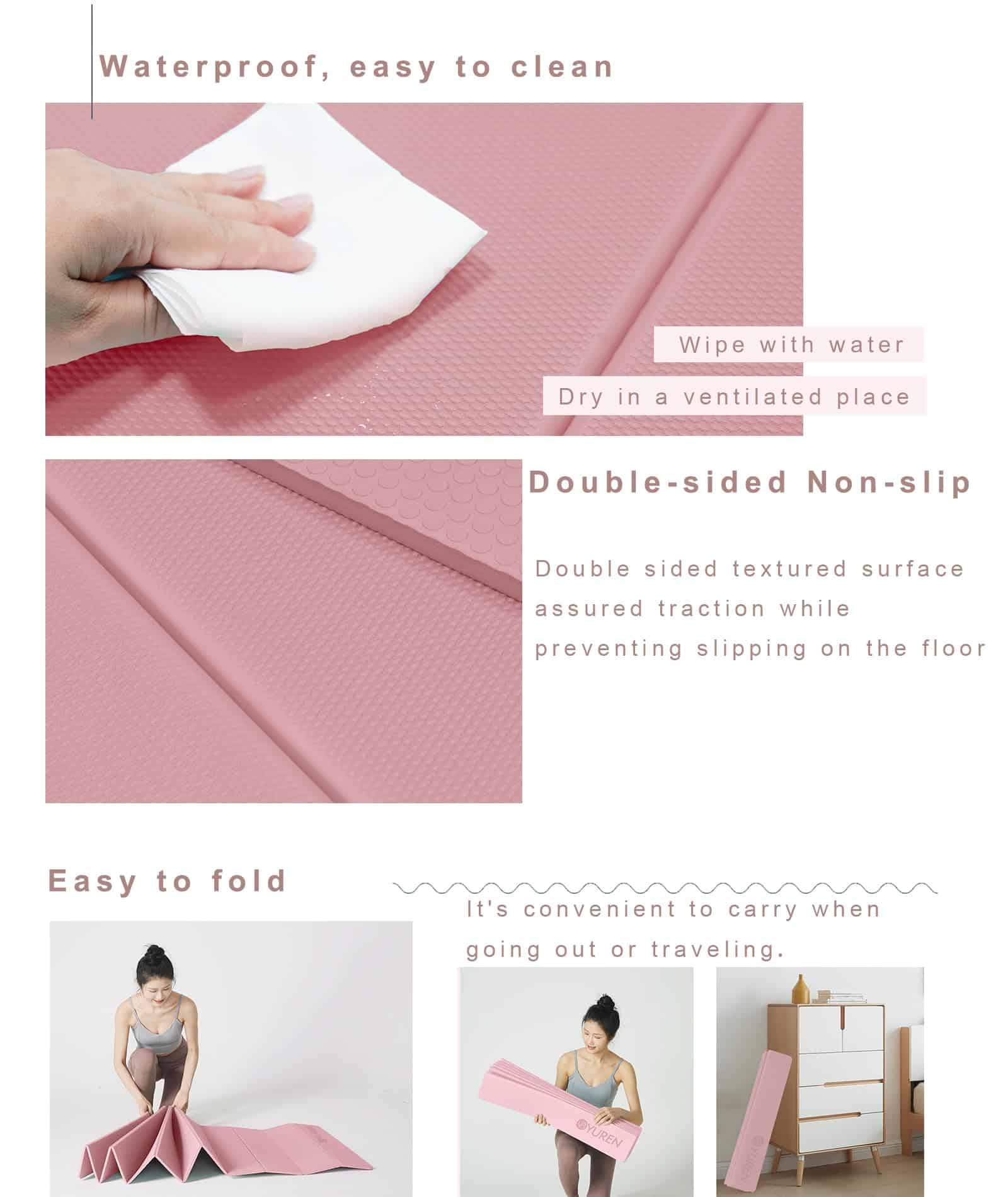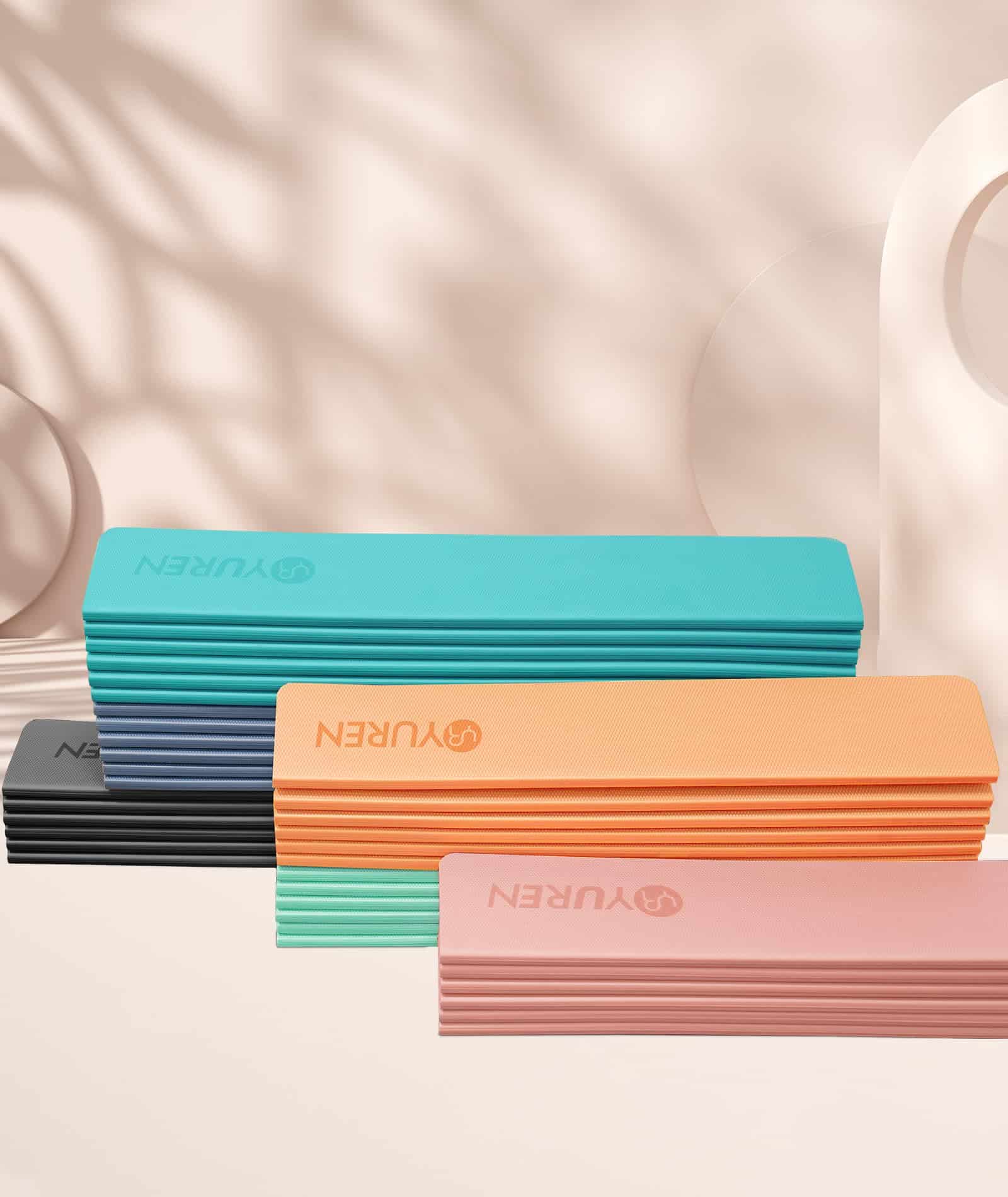 5. Tapete de Yoga para Viajes: La superficie impermeable y el diseño plegable hacen que el tapete esté más limpio. Ligero y compacto para llevar, ideal para tus viajes, gimnasio, estudio, parque o actividades en la playa.